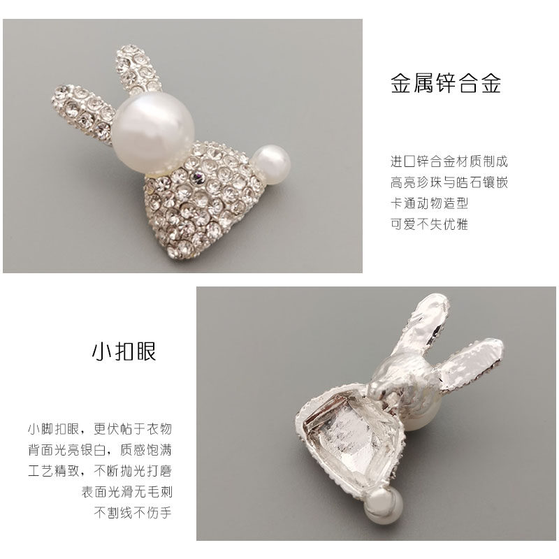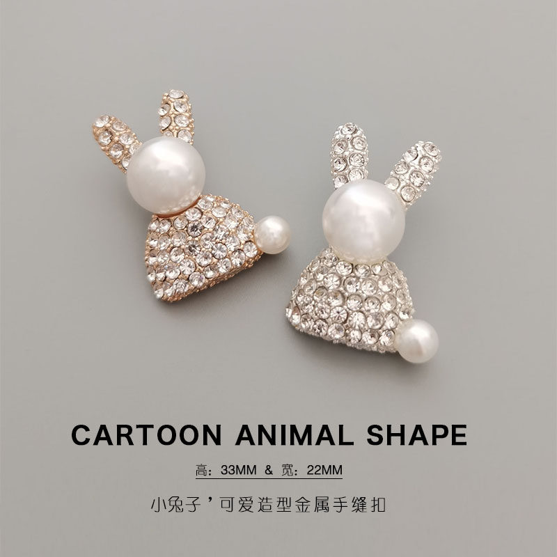 📚 满钻小兔子钮扣DIY动物饰品配件卡通金属扣珍珠皮草纽扣发饰 外套