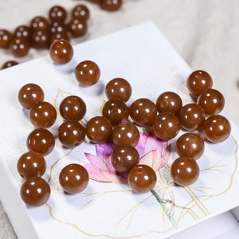 📚 天然和田玉且末糖料散珠圆珠diy玉髓玉石手链项链手工编制饰品珠
