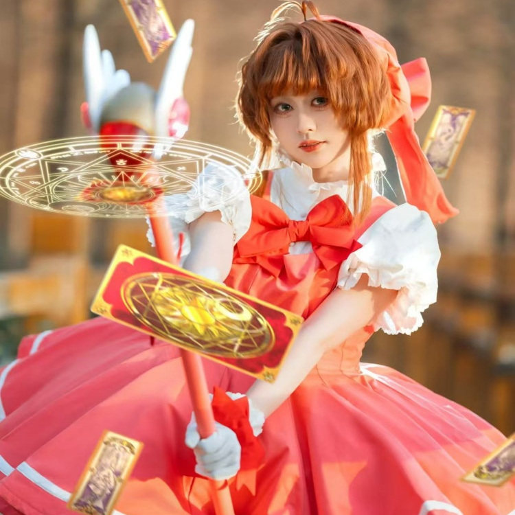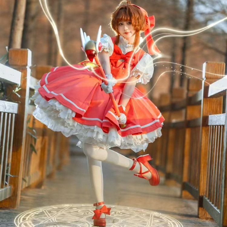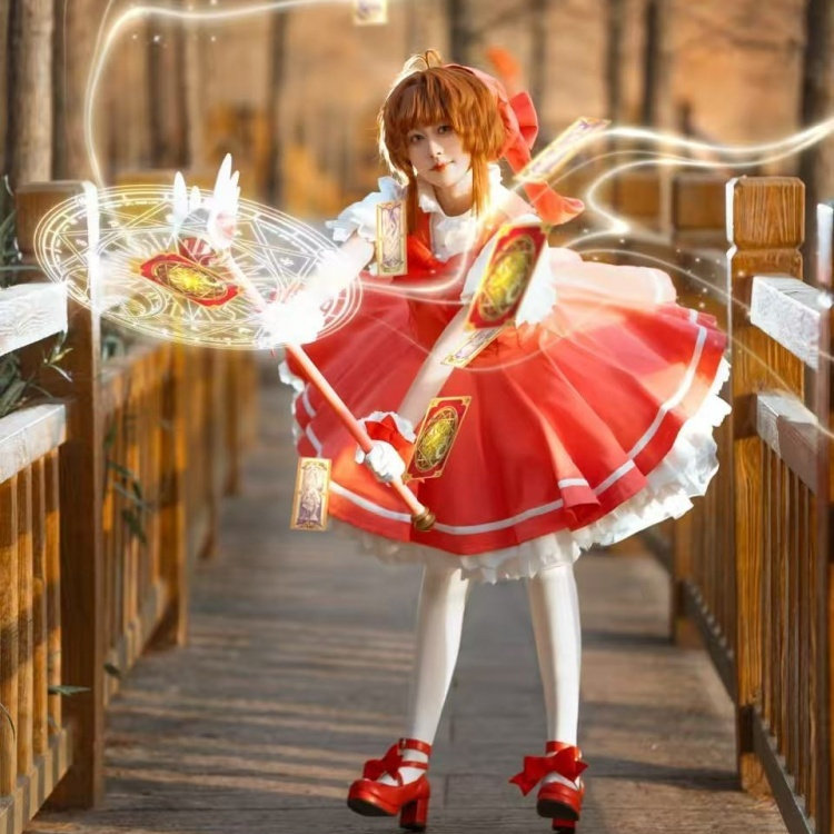 📚 百变小樱cos服魔卡少女樱红白战斗服cosplay女装魔法少女魔术服装