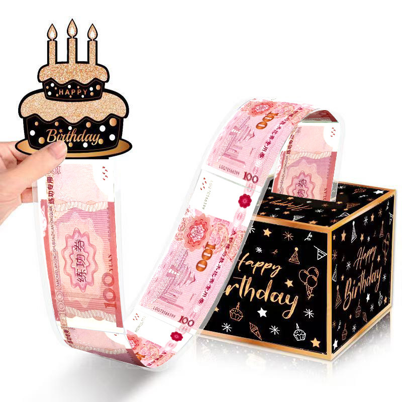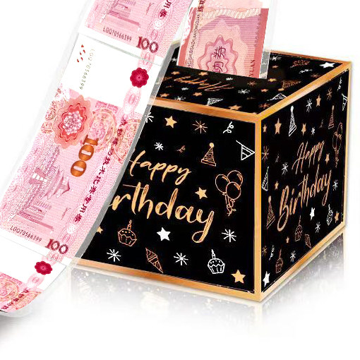 📚 趣味取款机红包盒抽钱取钱拉出钱生日礼物黑金主题礼盒创意惊喜派