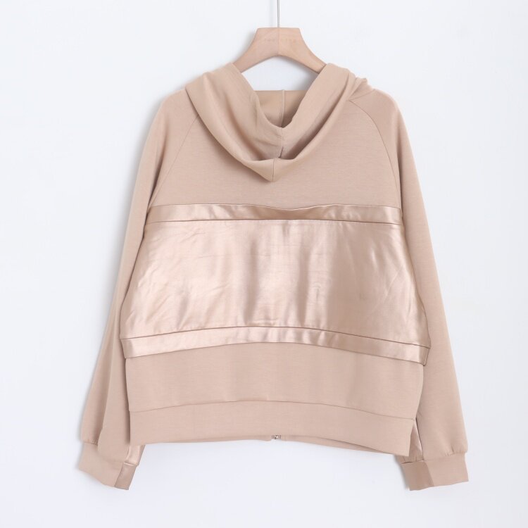📚 D180112日单客供新款贵牌1.2W客供料拉链宽松女连帽休闲拼接外套