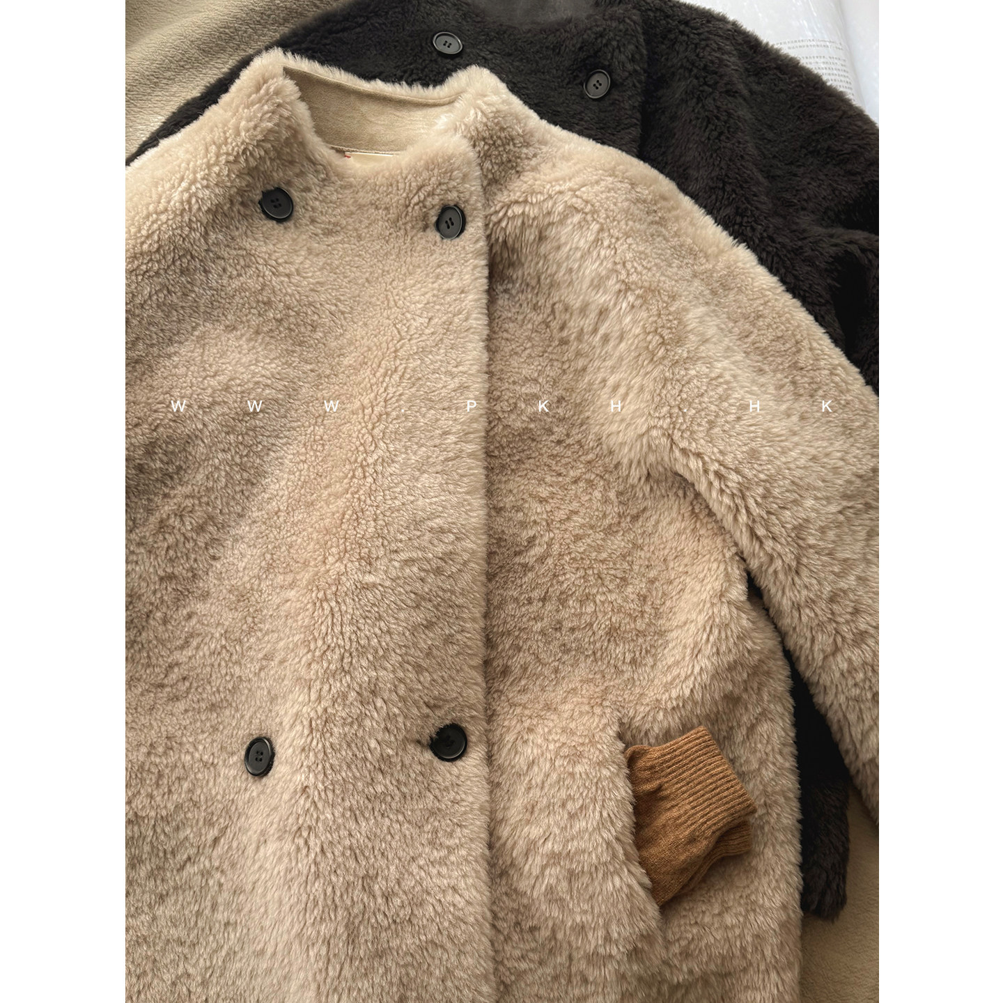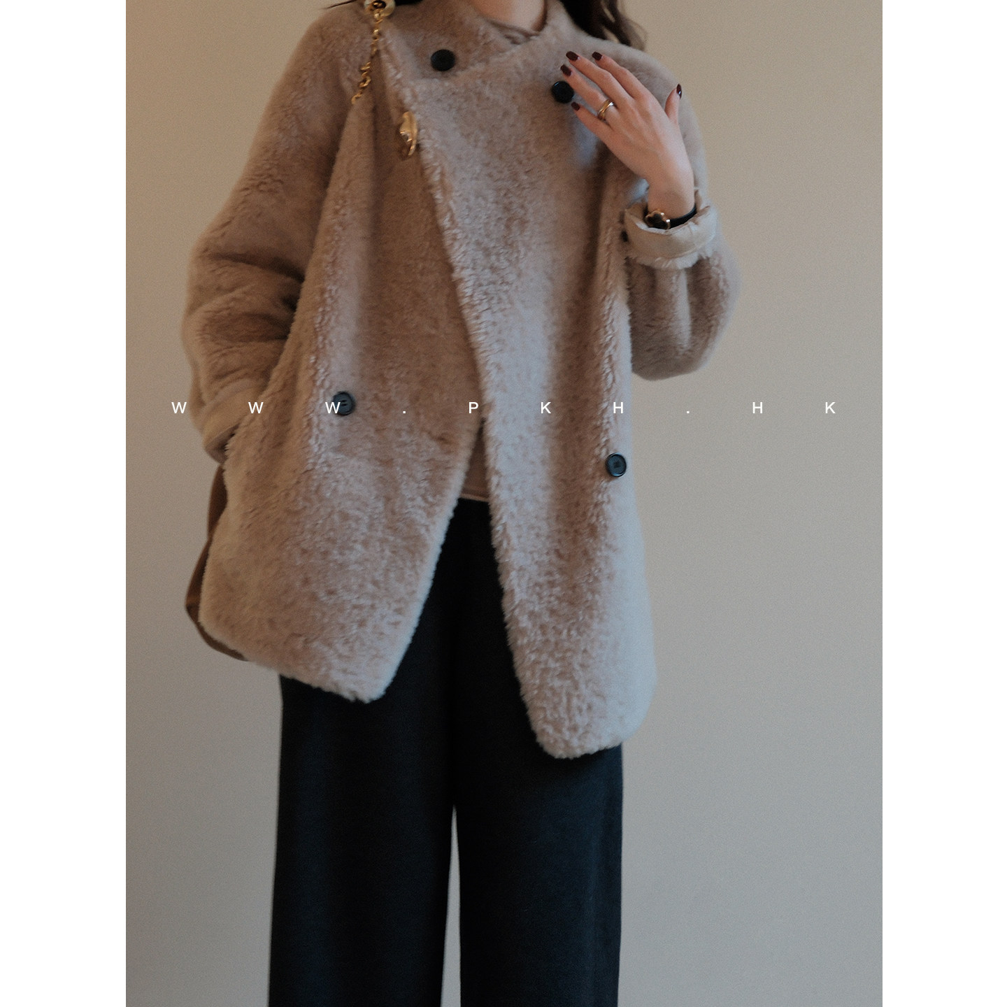 📚 PKH.HK特冬季新自留时髦显贵气100%羊毛仿拉贡双排扣中长皮草外套