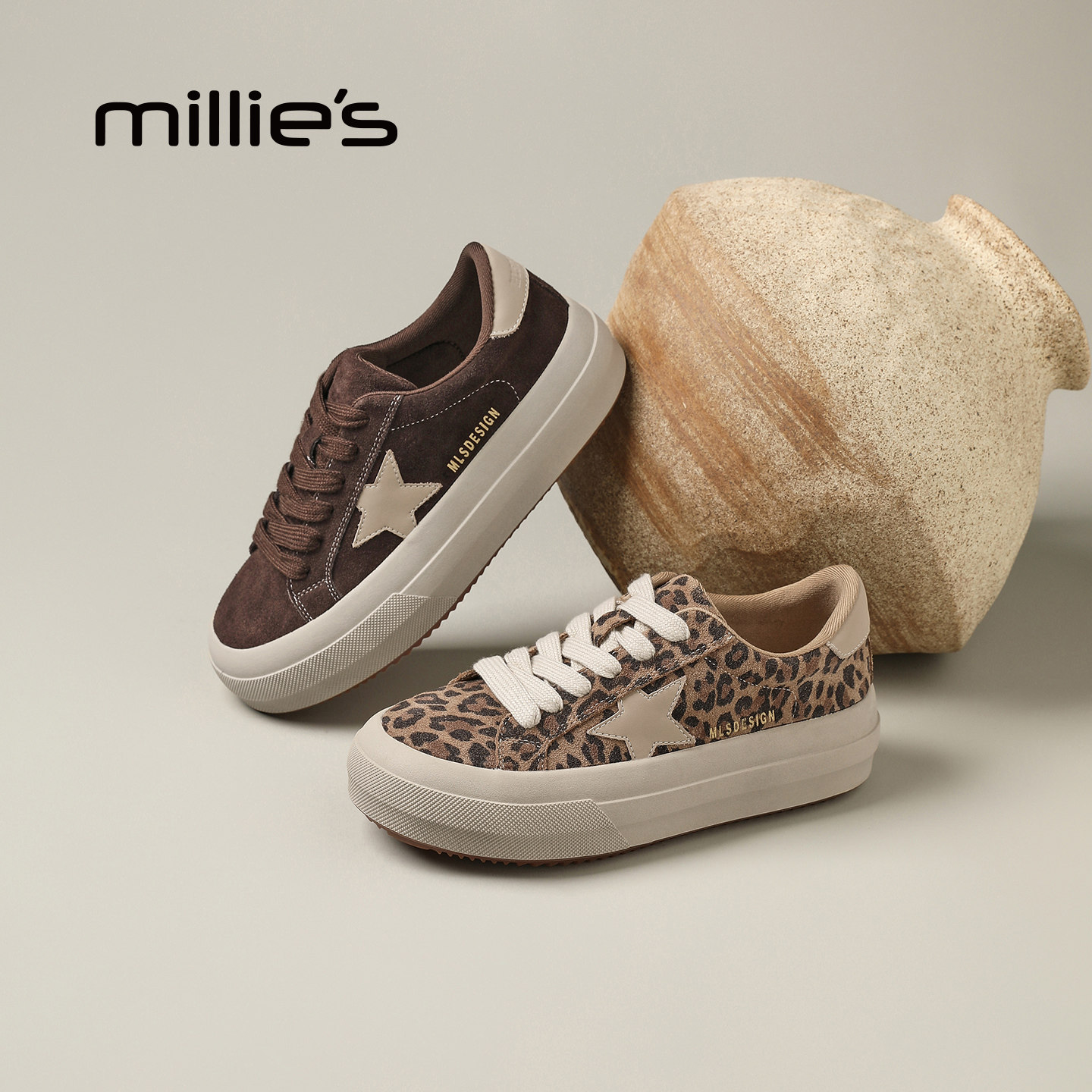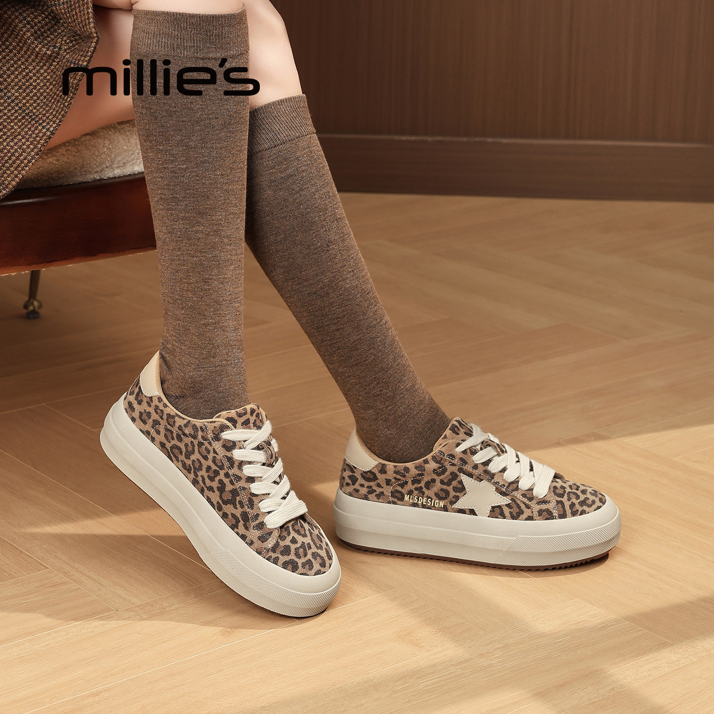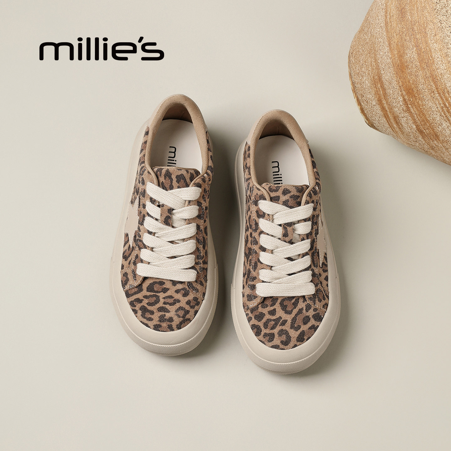 📚 MILLIE'S/妙丽系带深口单鞋女款豹纹星星鞋子时尚休闲鞋厚底板鞋