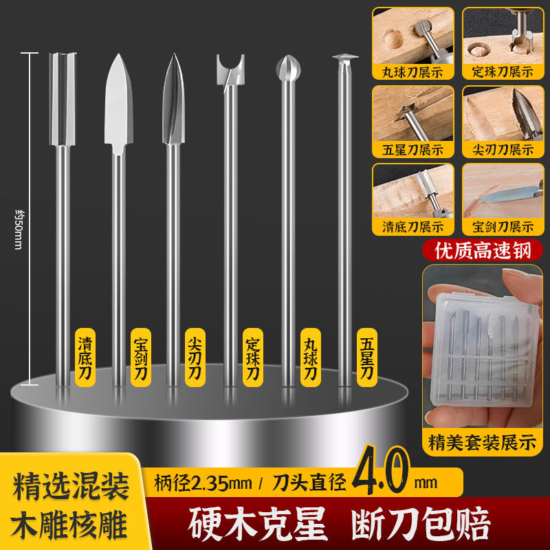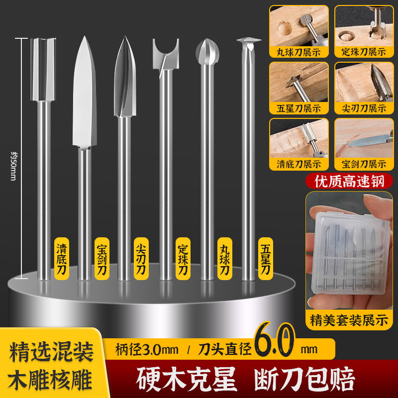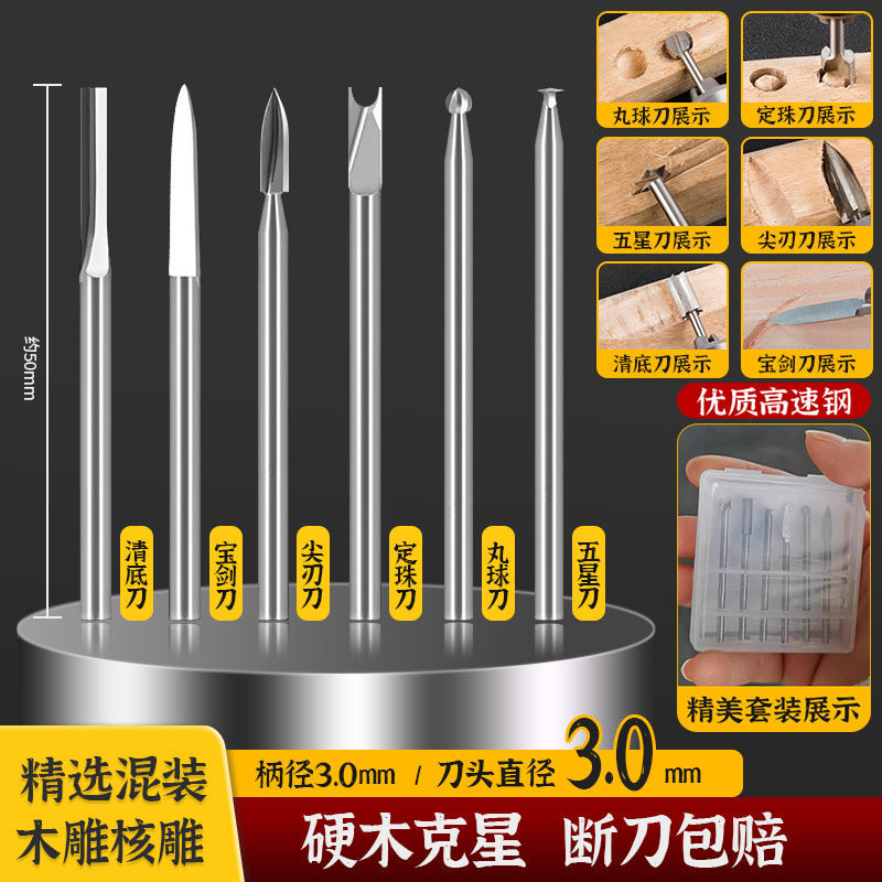 📚 木工电动雕刻刀头牙机雕刻工具套装钻头打胚刀根雕打磨头木雕铣刀