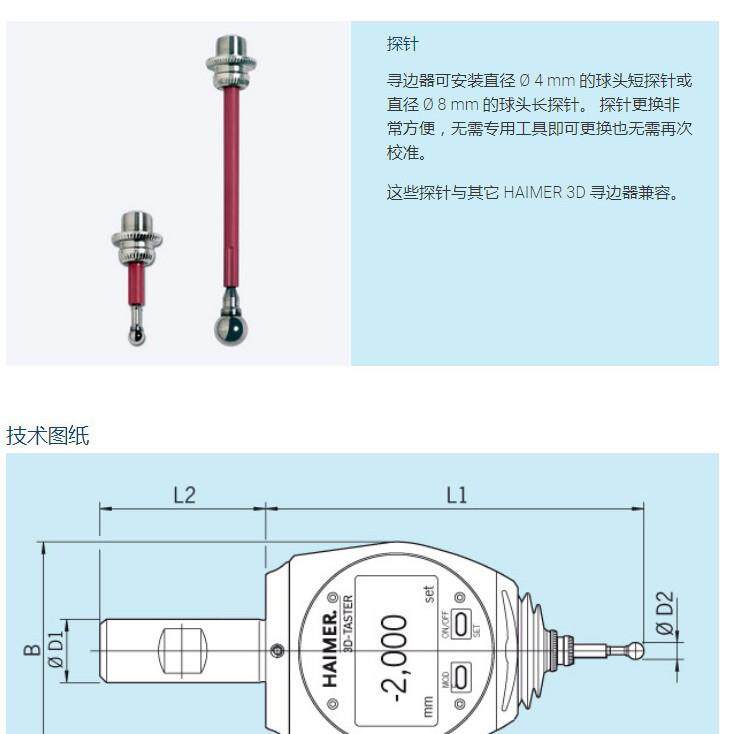 📚 德国HAIMER3D寻边器专用长探针80.363.00陶瓷高精度寻边器