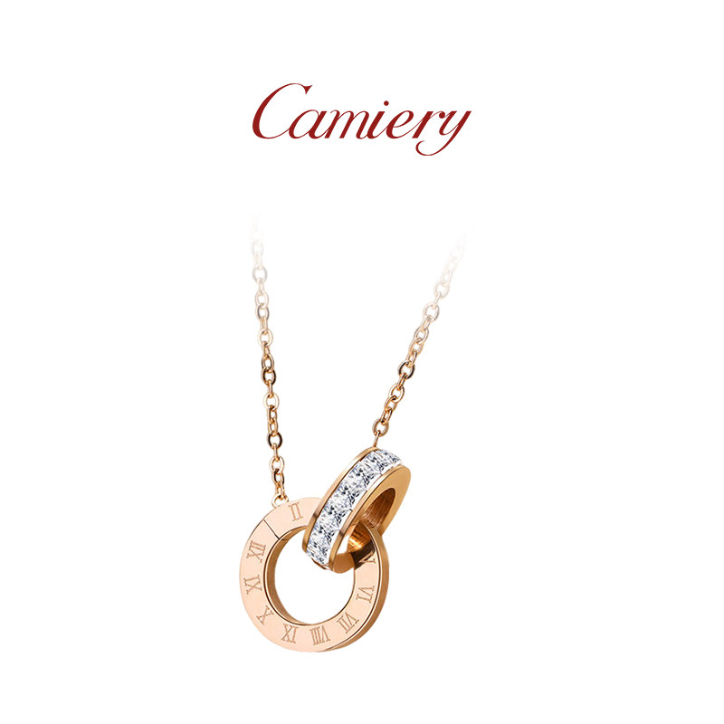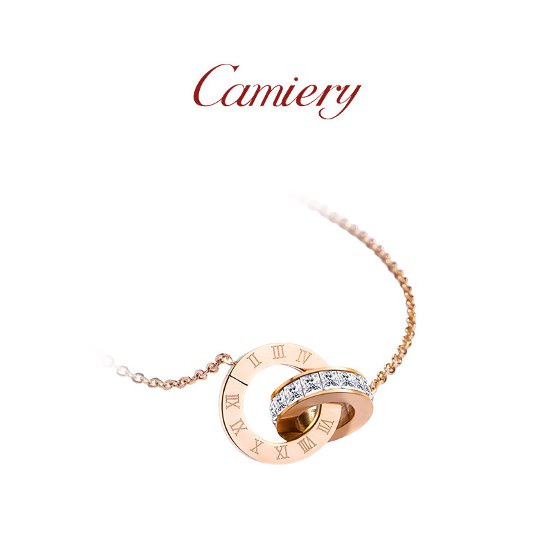 📚 CAMIERY玫瑰金LOVE系列环环相扣项链轻奢小众气质百搭锁骨链