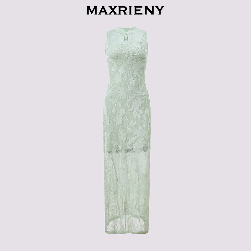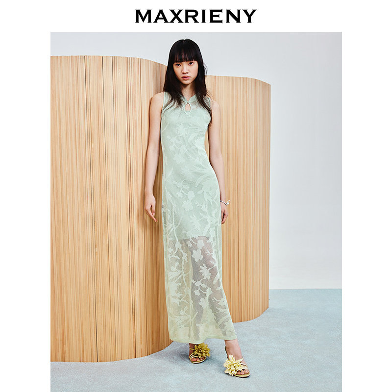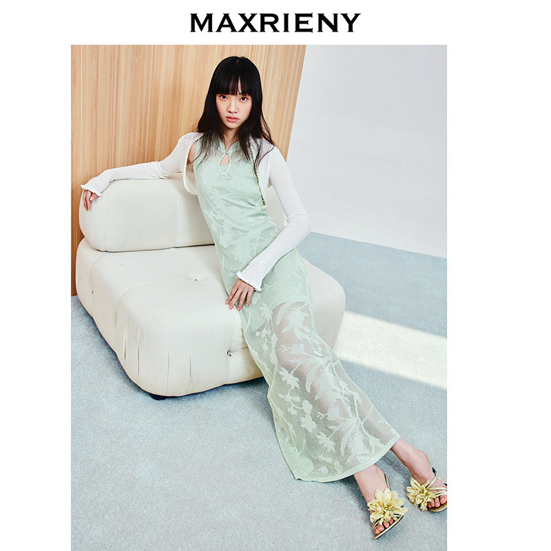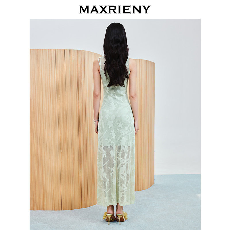 📚 【商场同款-春游记】MAXRIENY水滴挖空复古暗纹连衣裙25春季新款