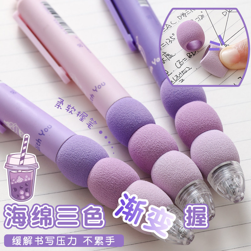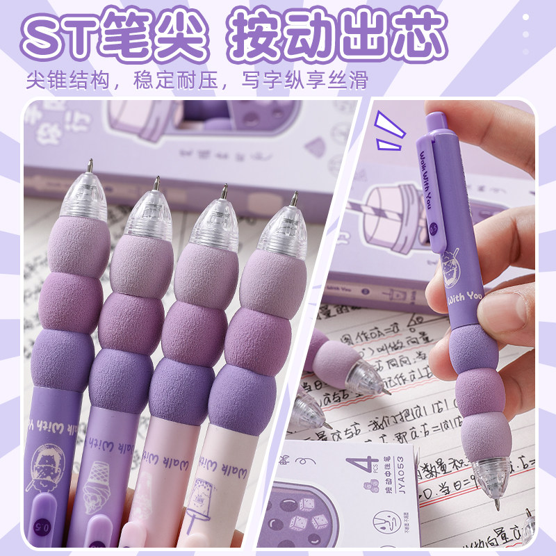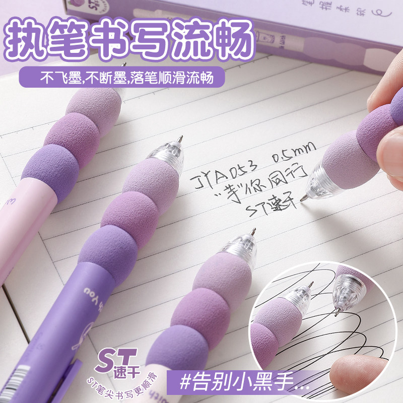 📚 超软欧包笔握按动中性笔系列学生专用高颜值刷题速干笔初中生ST笔头0.5黑色顺滑圆珠签字黑笔水笔库洛米紫色
