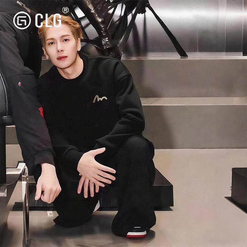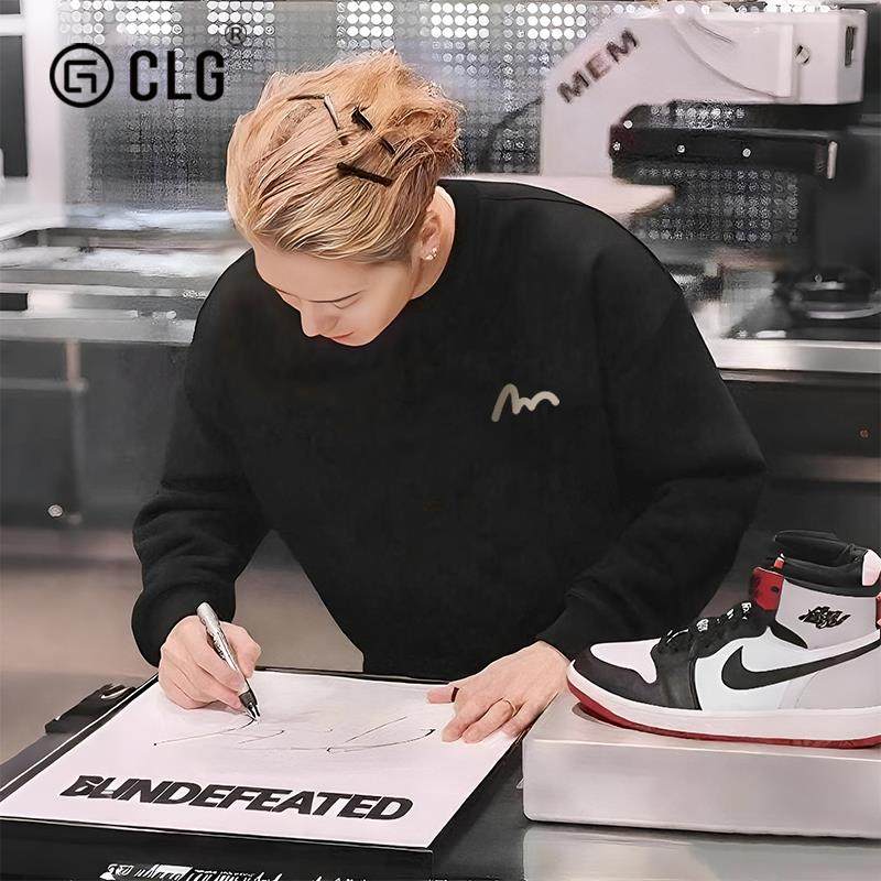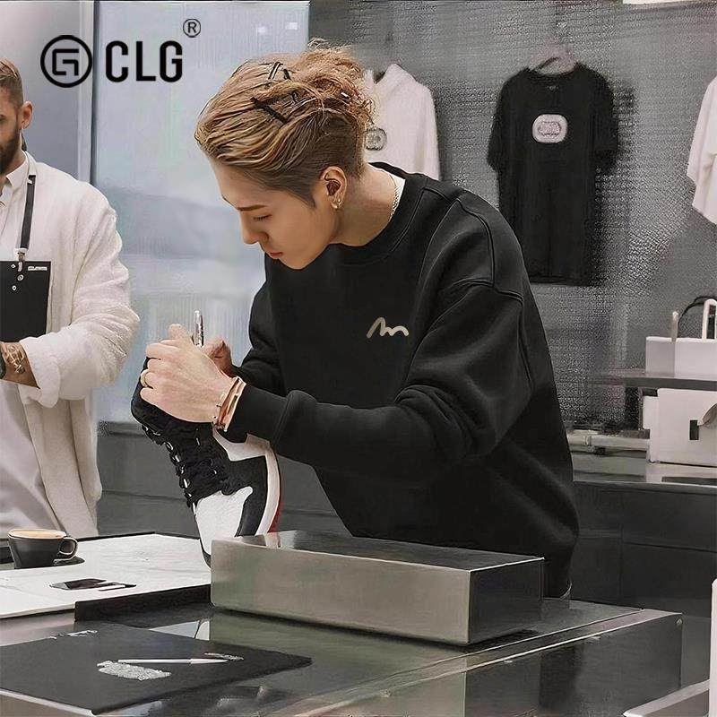 📚 香港CLG潮牌王嘉尔同款简约印花圆领卫衣新款宽松加绒套头情侣装