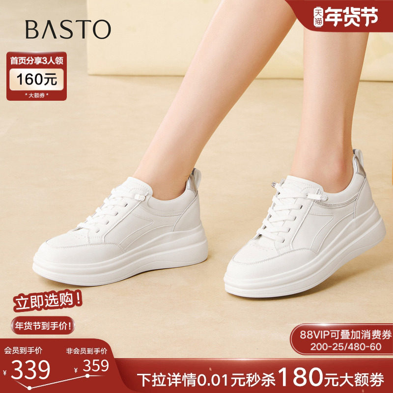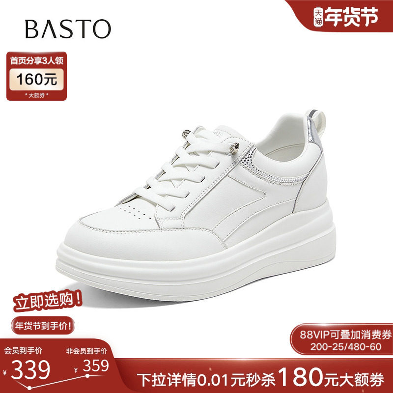 📚 百思图2026春季商场新款松糕厚底增高小白鞋女运动休闲鞋BJ153AM6