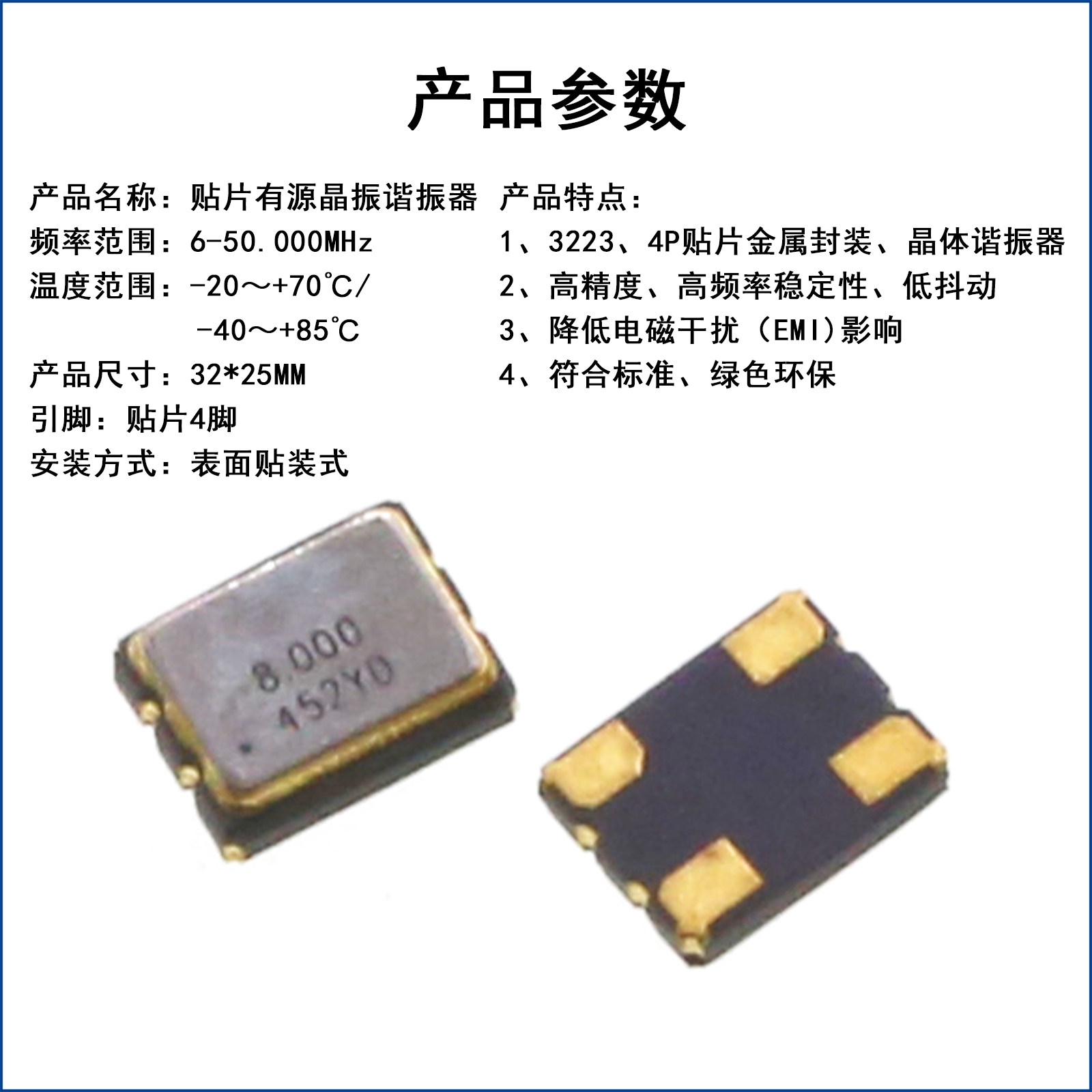 📚 3225-4P贴片有源晶振12M/8/16M/24/25/27/40/50MHz石英晶体振荡器