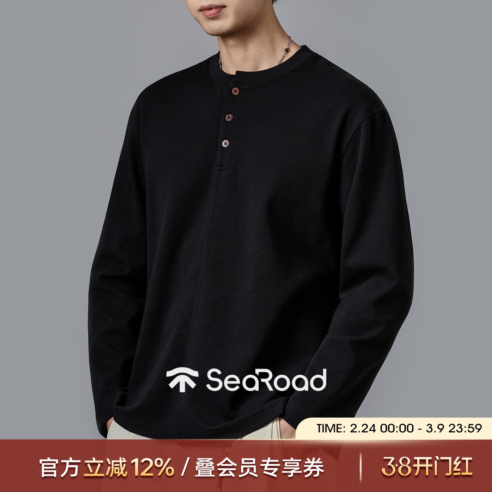 📚 海上公路错位假门襟长袖T恤男2025秋季简约高级感亨利领打底上衣