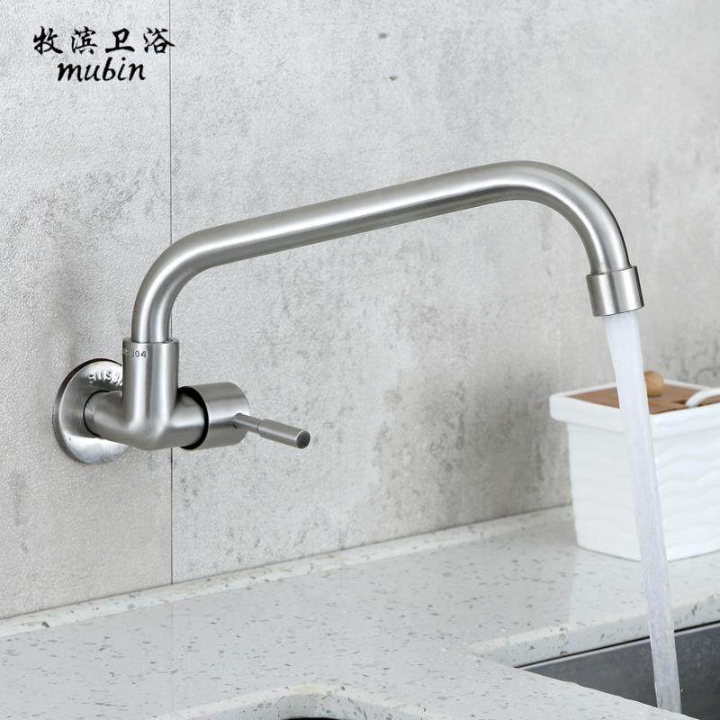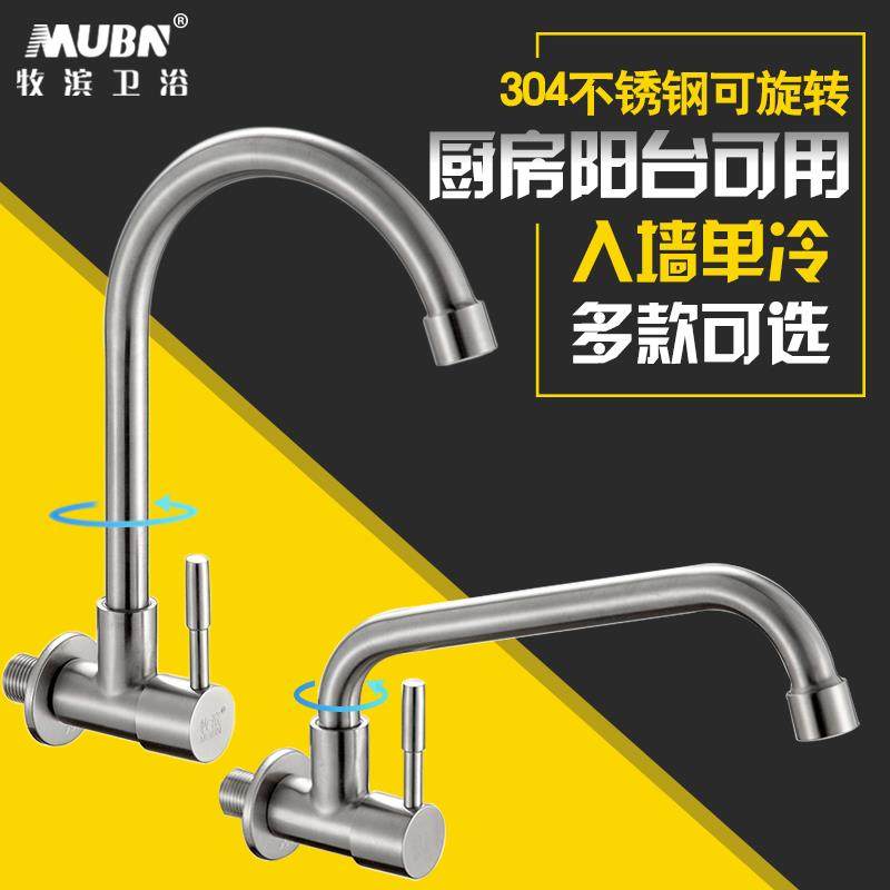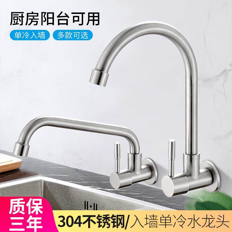 📚 全铜入墙式水龙头单冷横式墙壁墙上墙出立式厨房水槽洗菜盆洗衣池