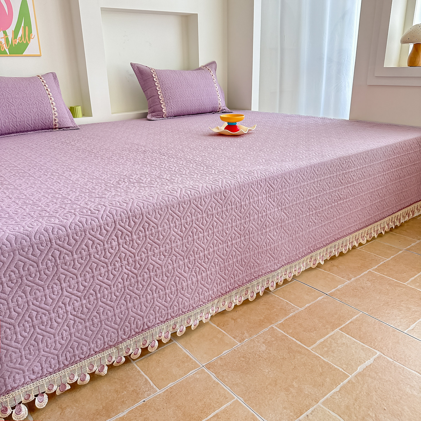 📚 紫色纯色全棉床盖农村大炕垫土炕床盖四季通用榻榻米床单防滑纯棉