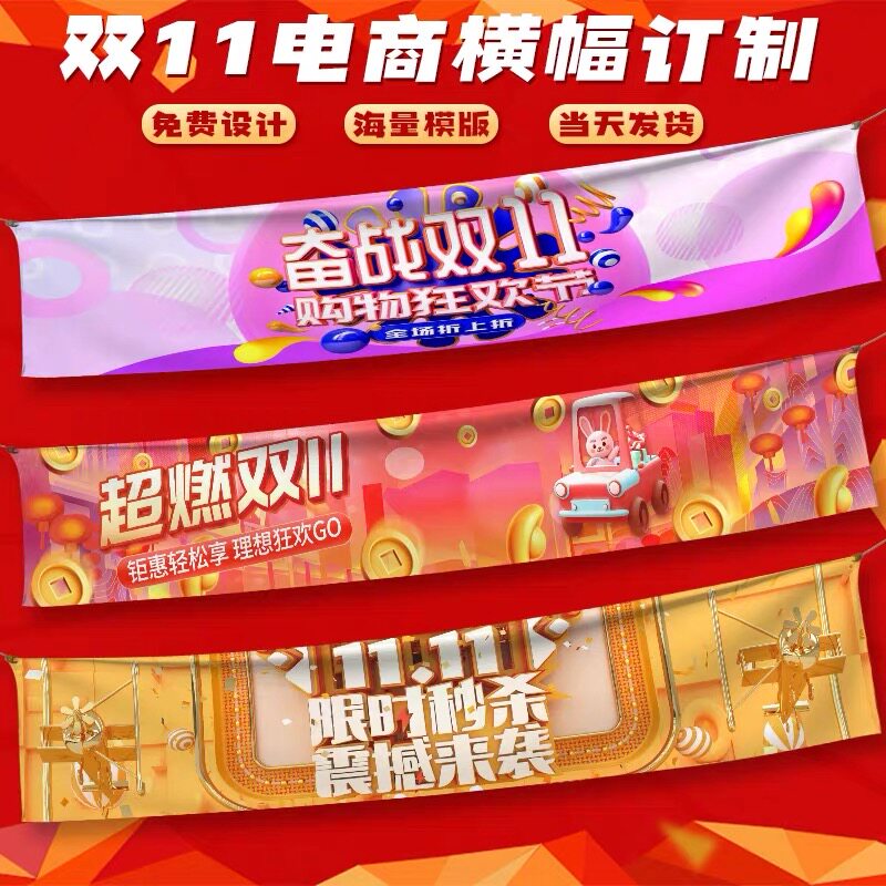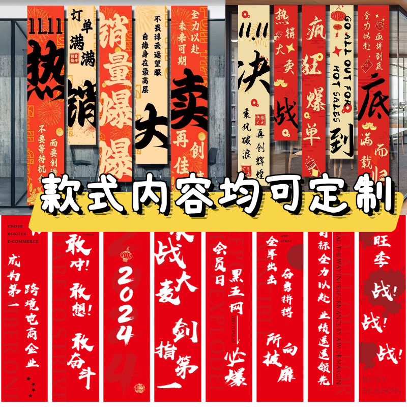 📚 双十一条幅定制活动氛围布置装饰背景布办公室激励标语口号彩色横幅设计双11电商公司业务启动会拉条旗帜定做