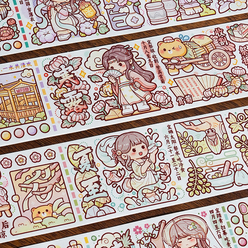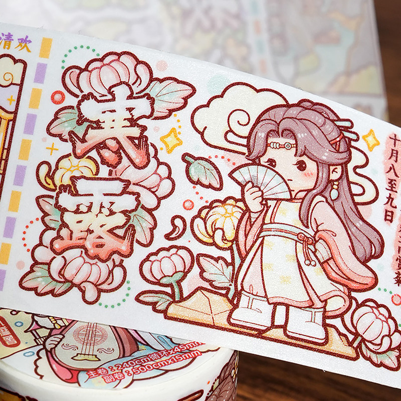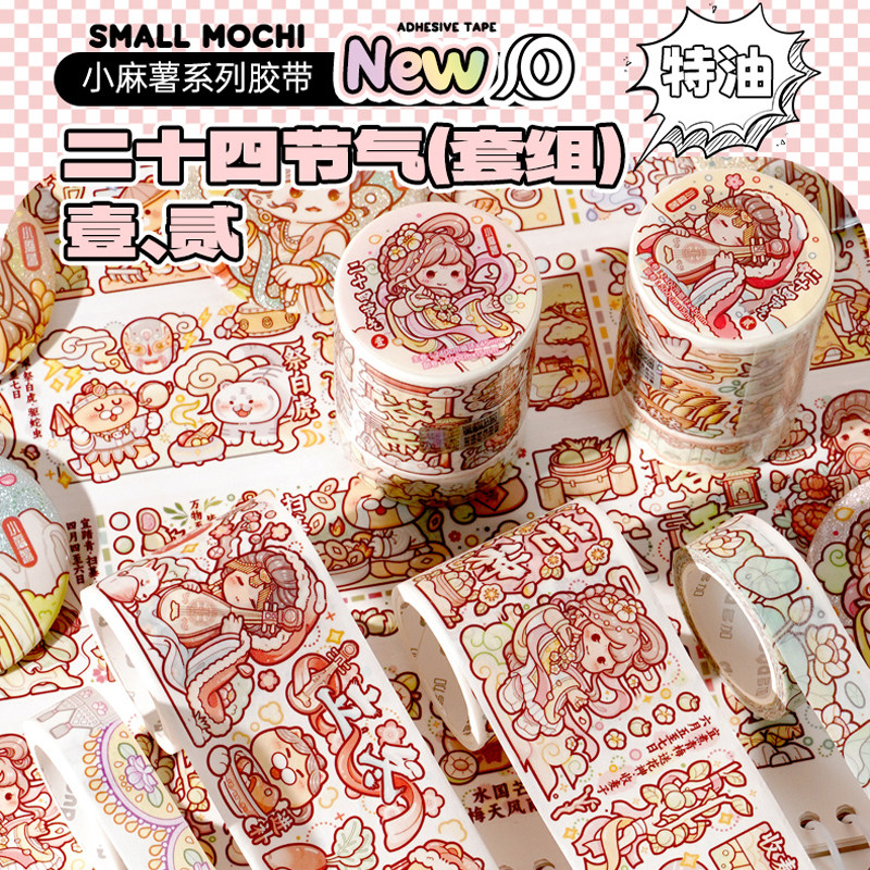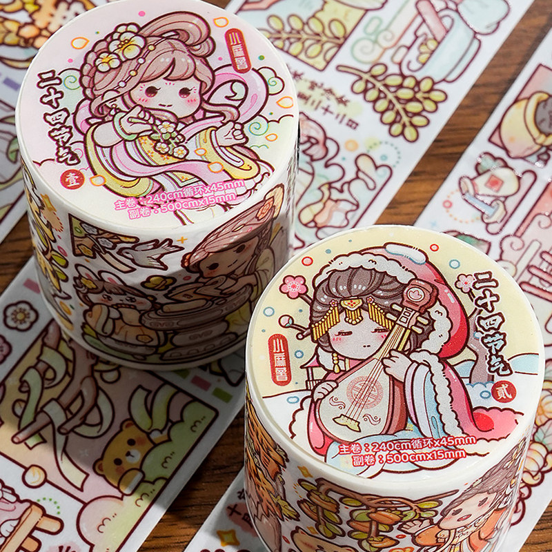 📚 小麻薯二十四节气胶带新款管弦繁奏甜甜冬日手账贴纸画整卷装饰