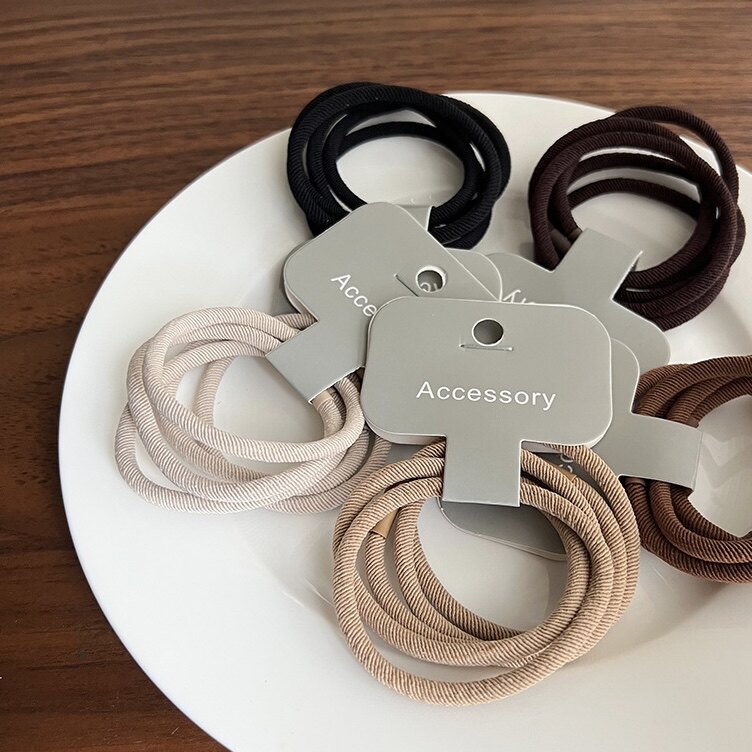 📚 Raffia奶咖色5条装基础发绳高弹力斜纹皮筋耐用扎头发圈简约头绳