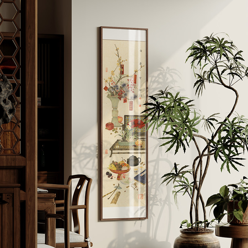📚 冰青新中式书房清供花瓶茶室平安喜乐欢喜玄关竖长条走廊装饰挂画