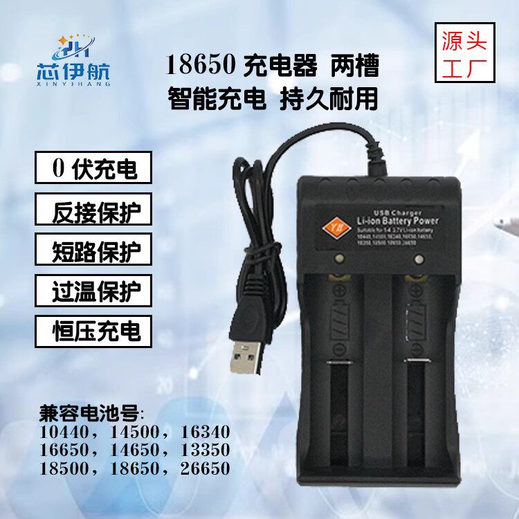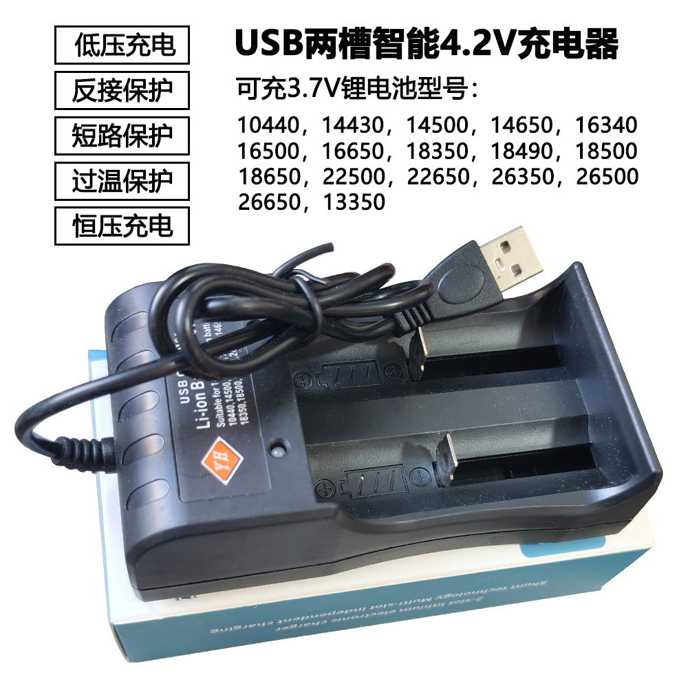 📚 智能USB双槽4.2V充电器1可充3.7V锂18650 26500 26350 22650 2250