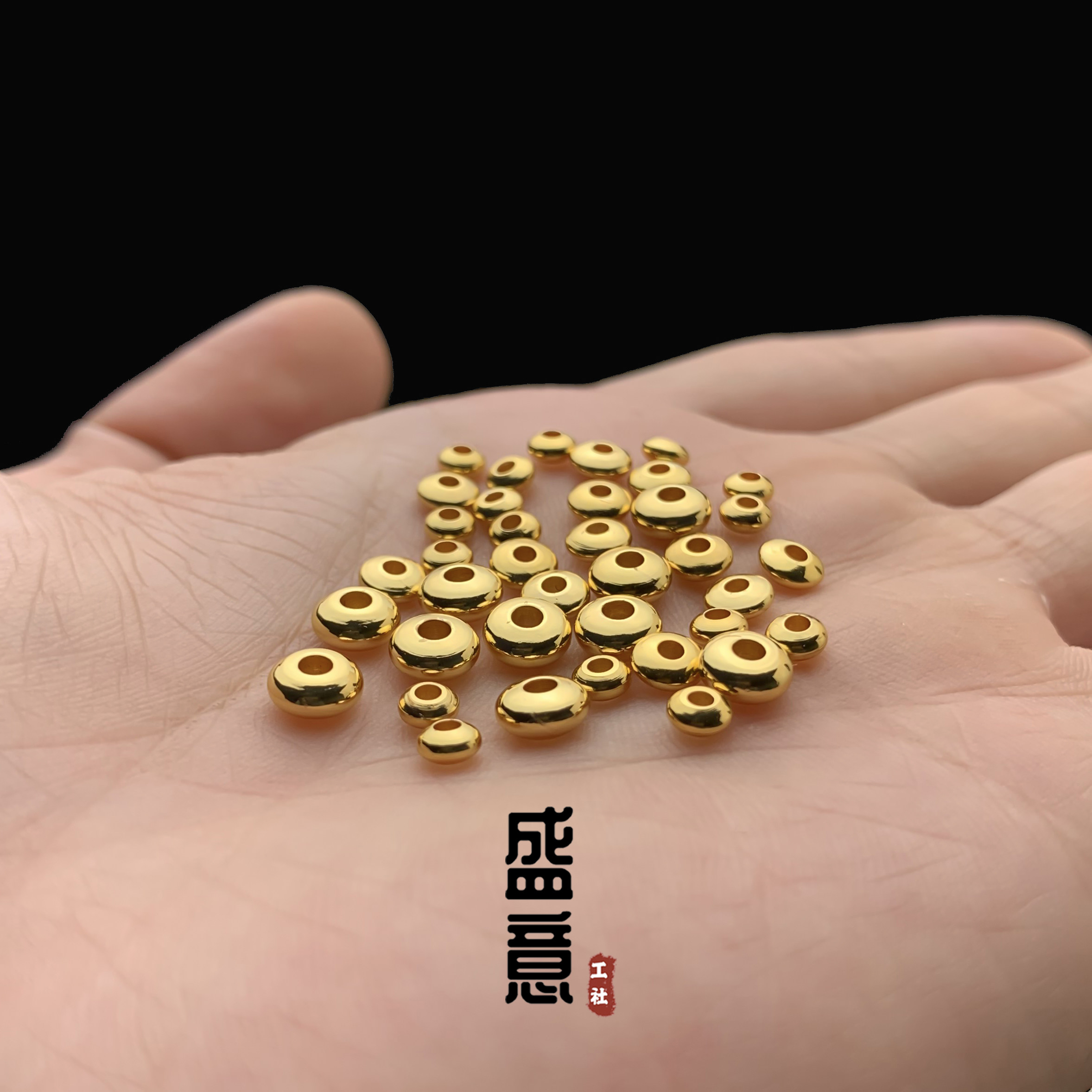 📚 古法18K老金工艺黄金色文玩光面飞碟隔片算盘沙金卡环diy配珠垫片
