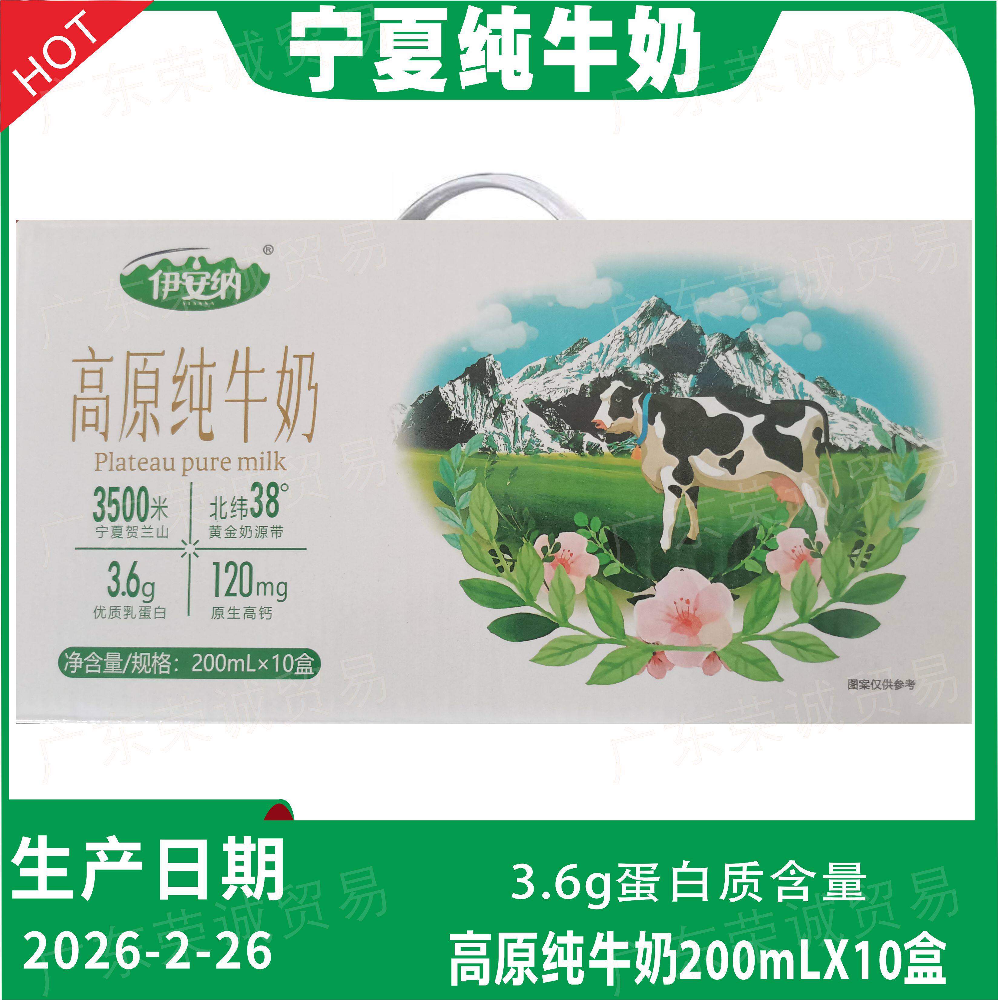 📚 宁夏伊安纳高原纯牛奶200mLX10盒3.6g蛋白质含量生牛乳学生早餐奶