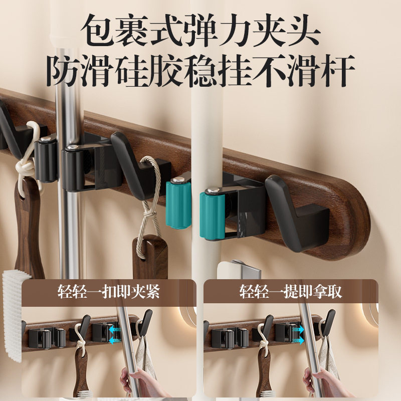 📚 黑胡桃木拖把壁挂夹浴室角架粘钩卫生间扫把拖布架固定墙上置物架
