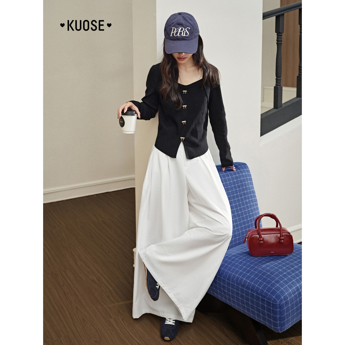 📚 阔色白色宽松阔腿裤休闲裤女2026春季穿搭气质高腰裤裙长裤子秋