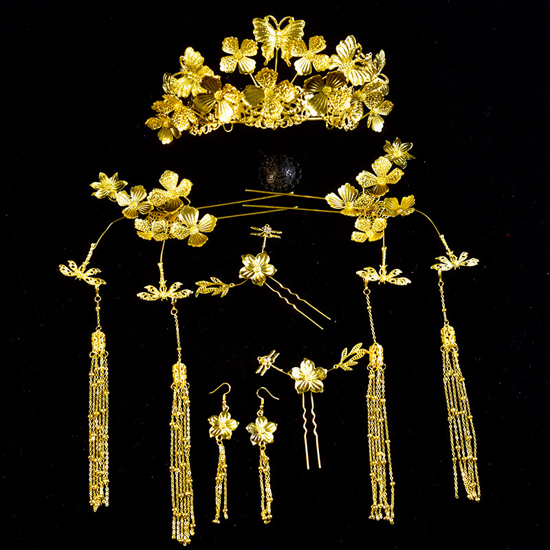 📚 明制秀禾服奢华精致花朵发冠新娘婚嫁汉服流苏凤冠头饰中式婚礼饰