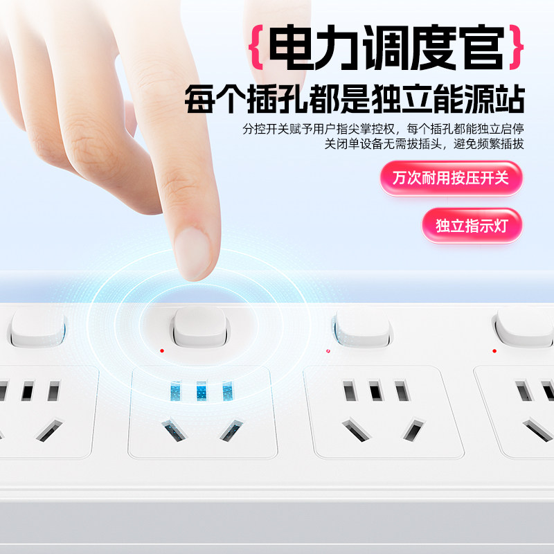 📚 插座不带线分控插排多功能独立开关多孔插线板自接线插板usb排插