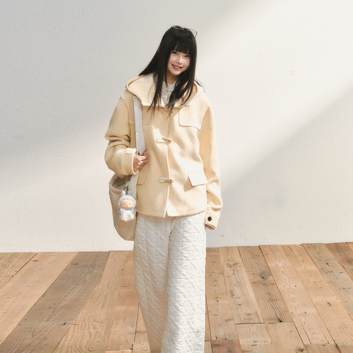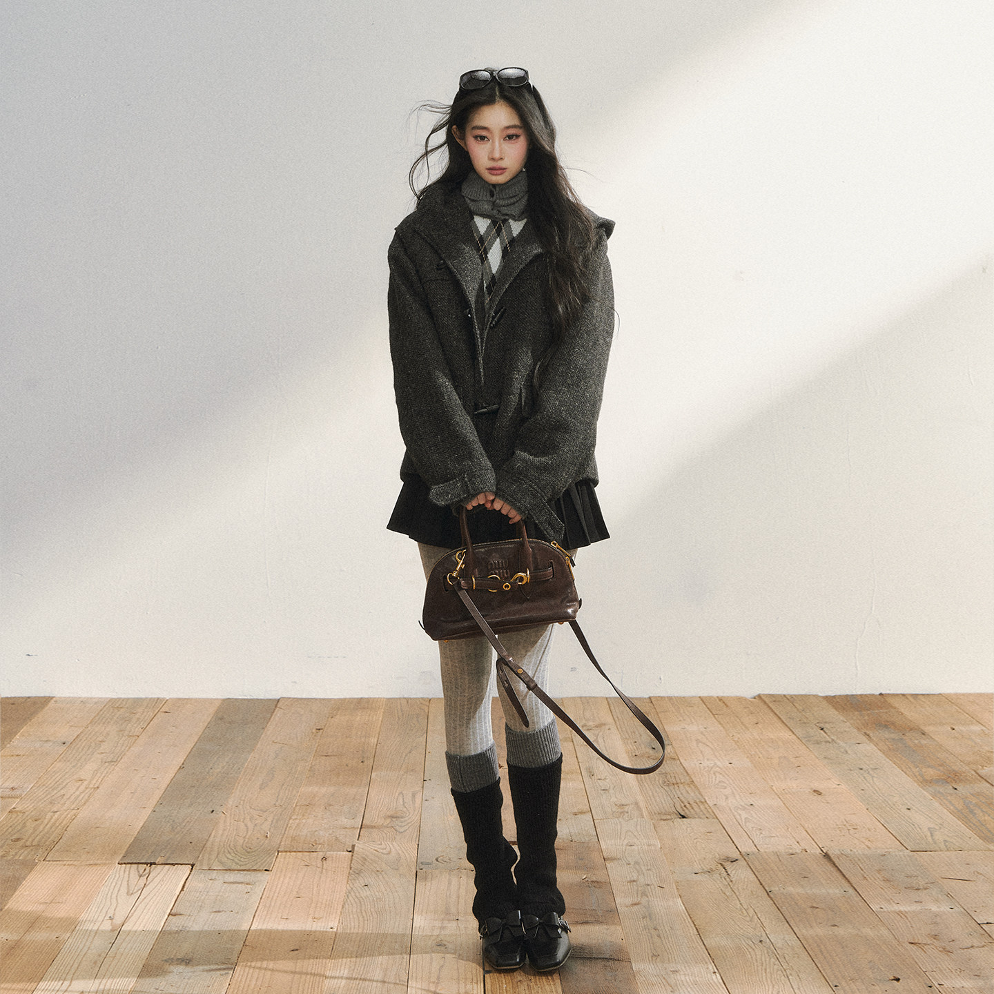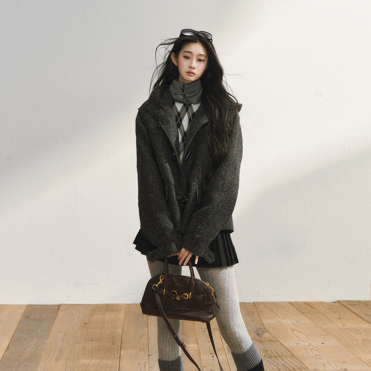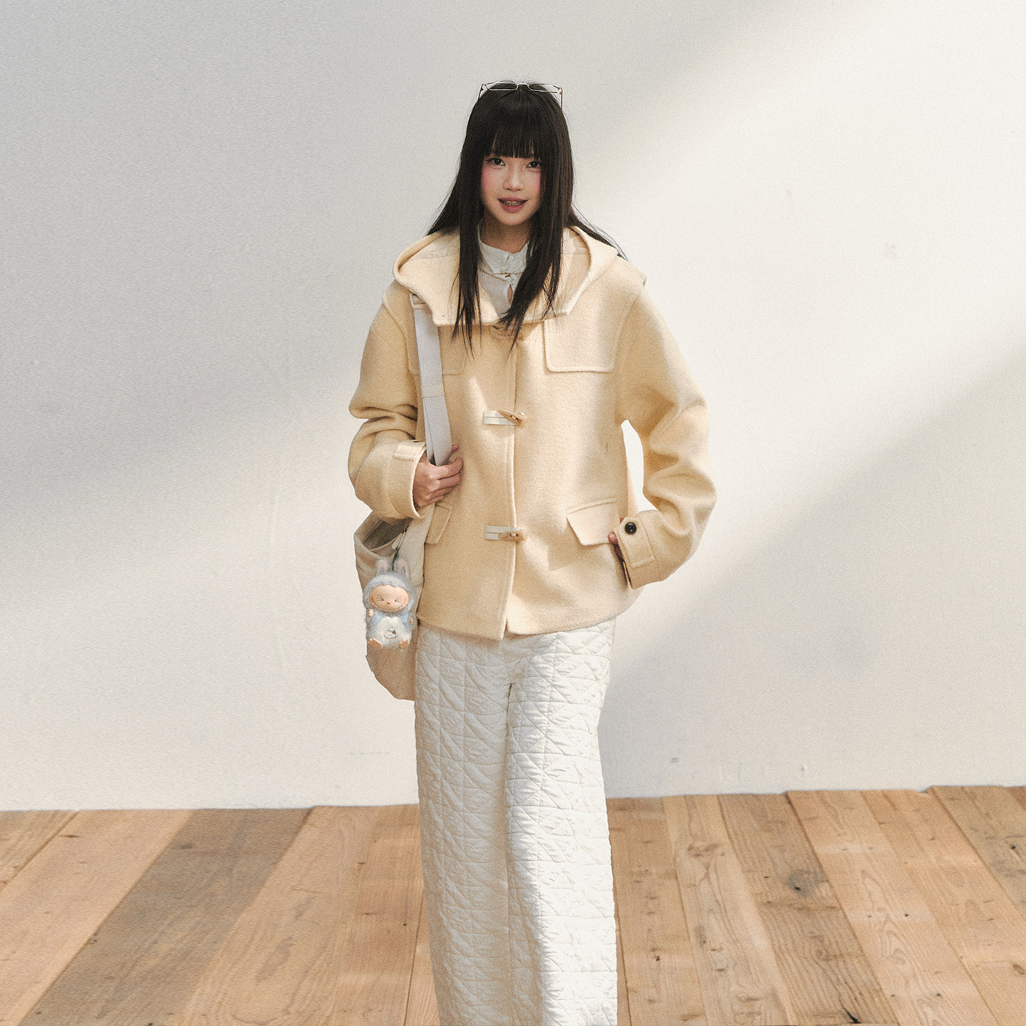 📚 7Shiftin 原创设计冬季新款韩系气质双色毛呢大衣羊角扣短款外套