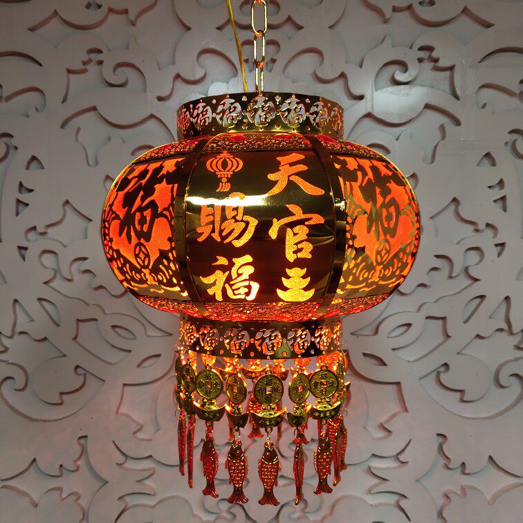 📚 LED合金天官赐福天公灯笼35公分插香灯笼 有求必应灯送灯光装饰盖