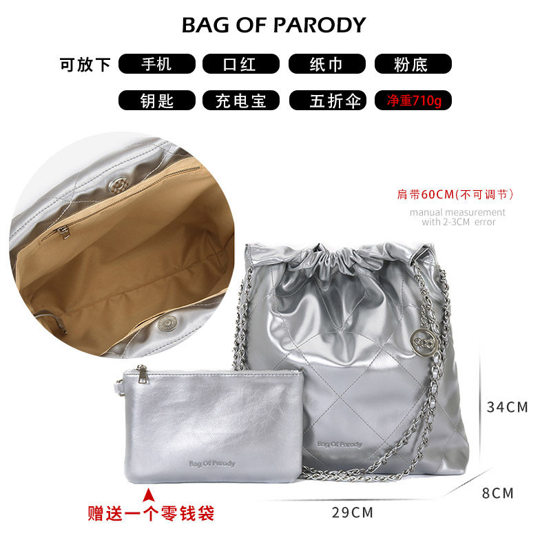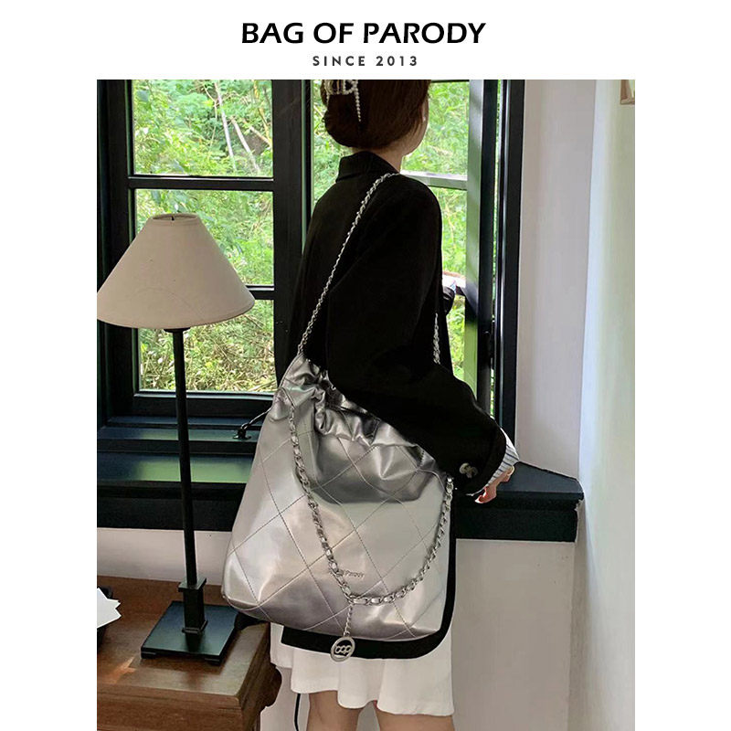📚 Bag of parody 银色包包2025新款菱格大容量垃圾袋托特单肩腋下包