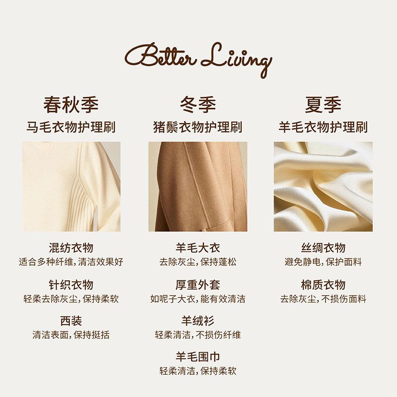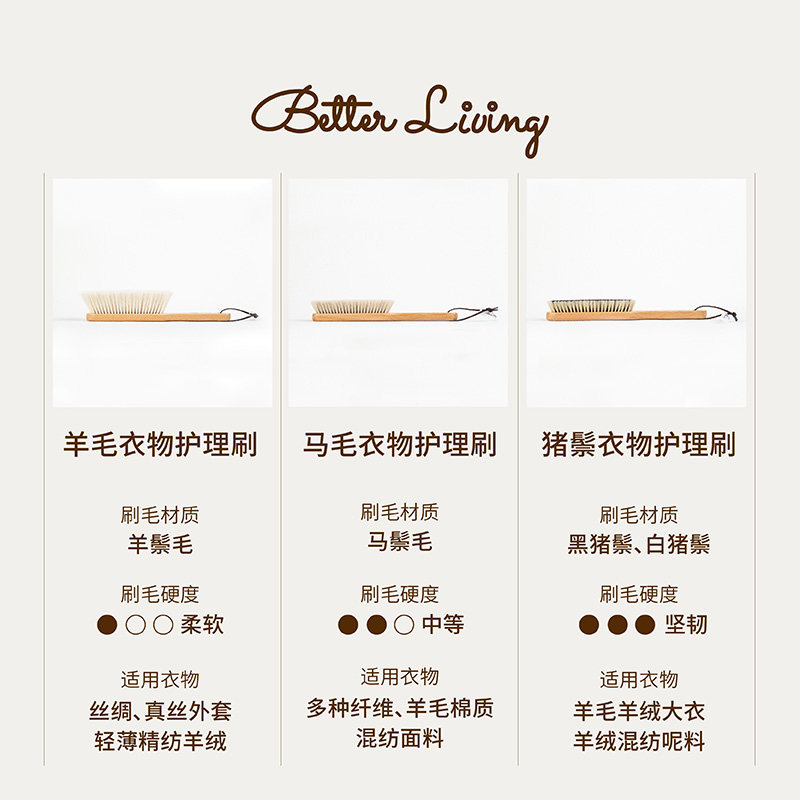 📚 BetterDaily白马尾猪鬃羊毛衣物刷梳理羊绒毛马海毛梳大衣专用刷