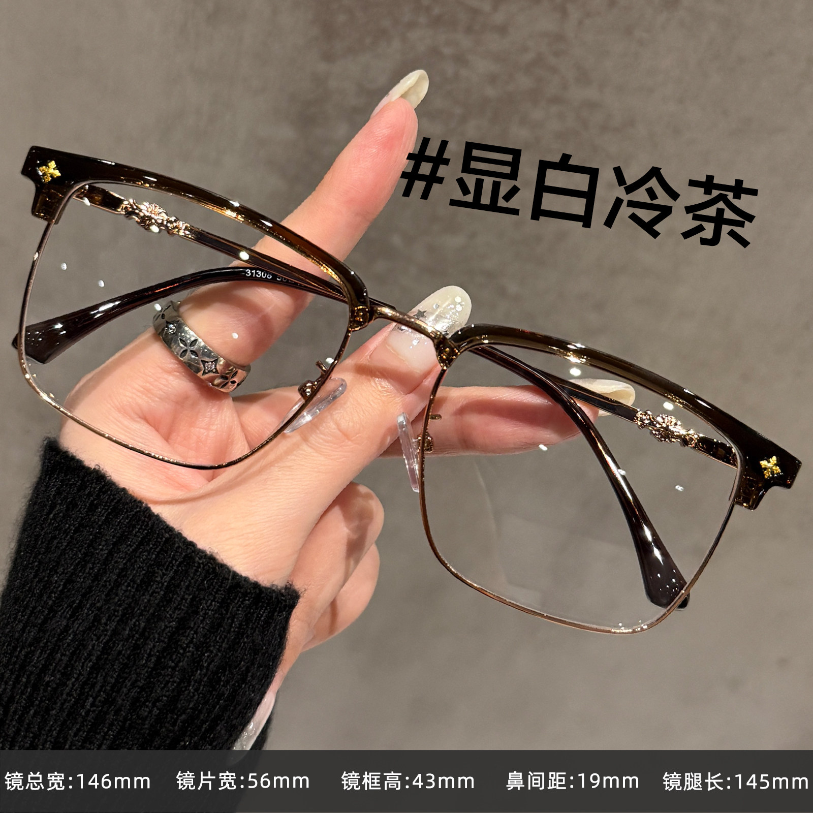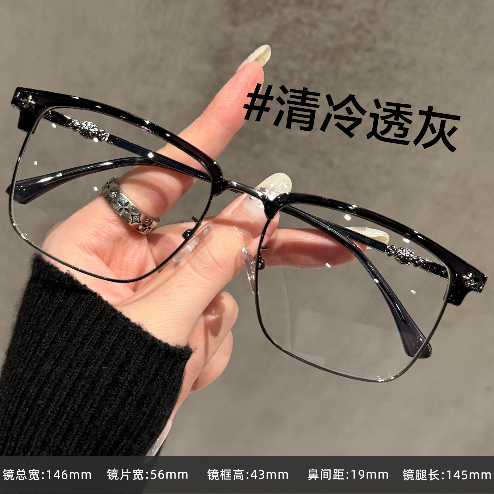 📚 超轻半框斯文眼镜男款近视可配度数痞帅超大框眼睛镜框架大脸显瘦