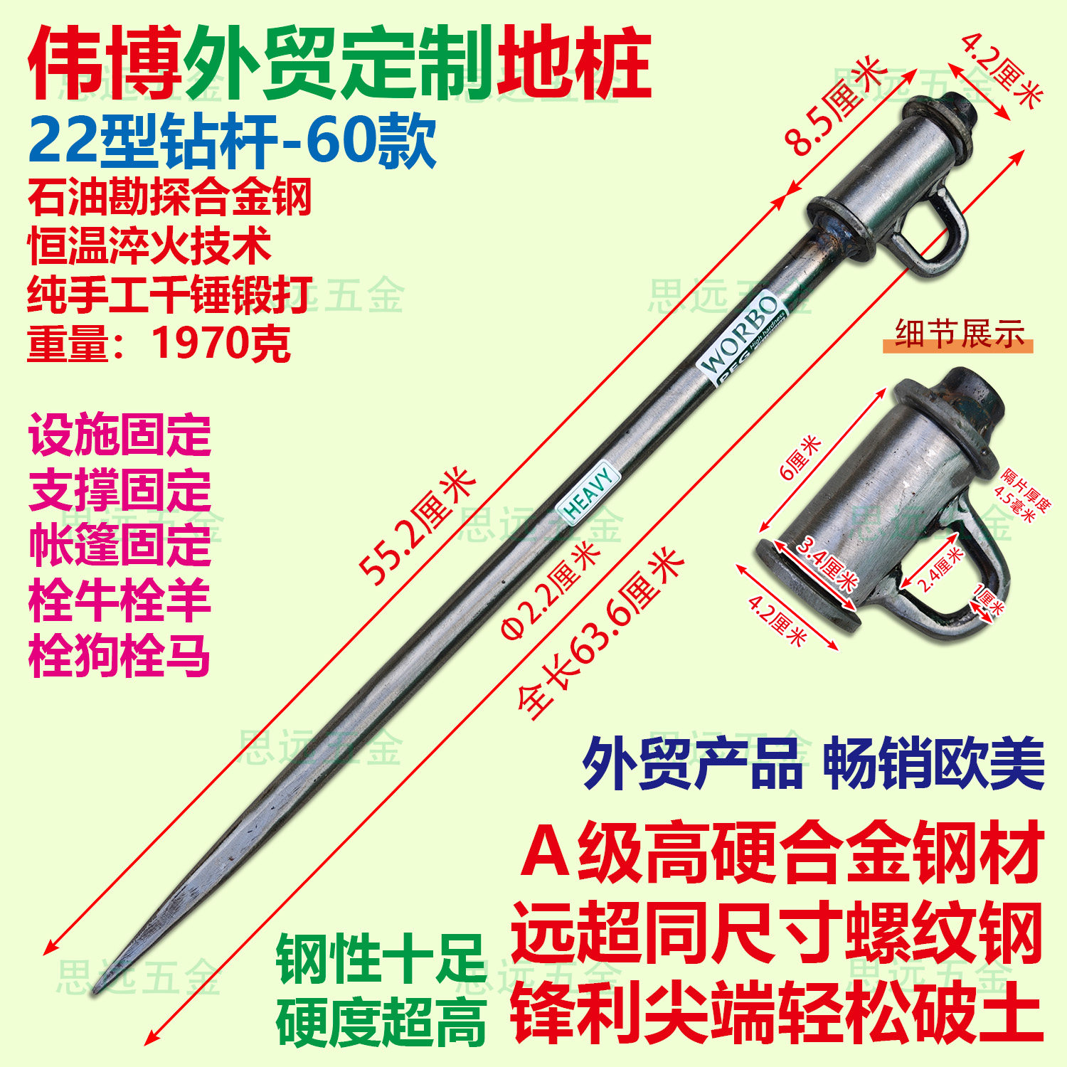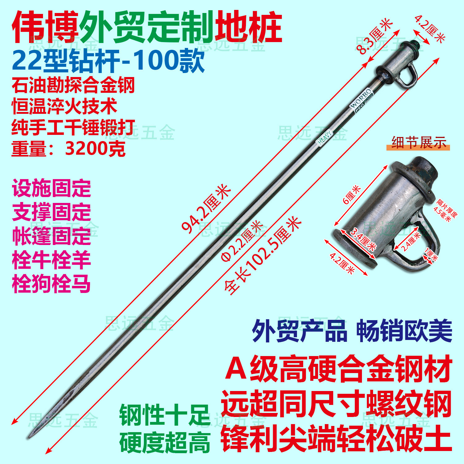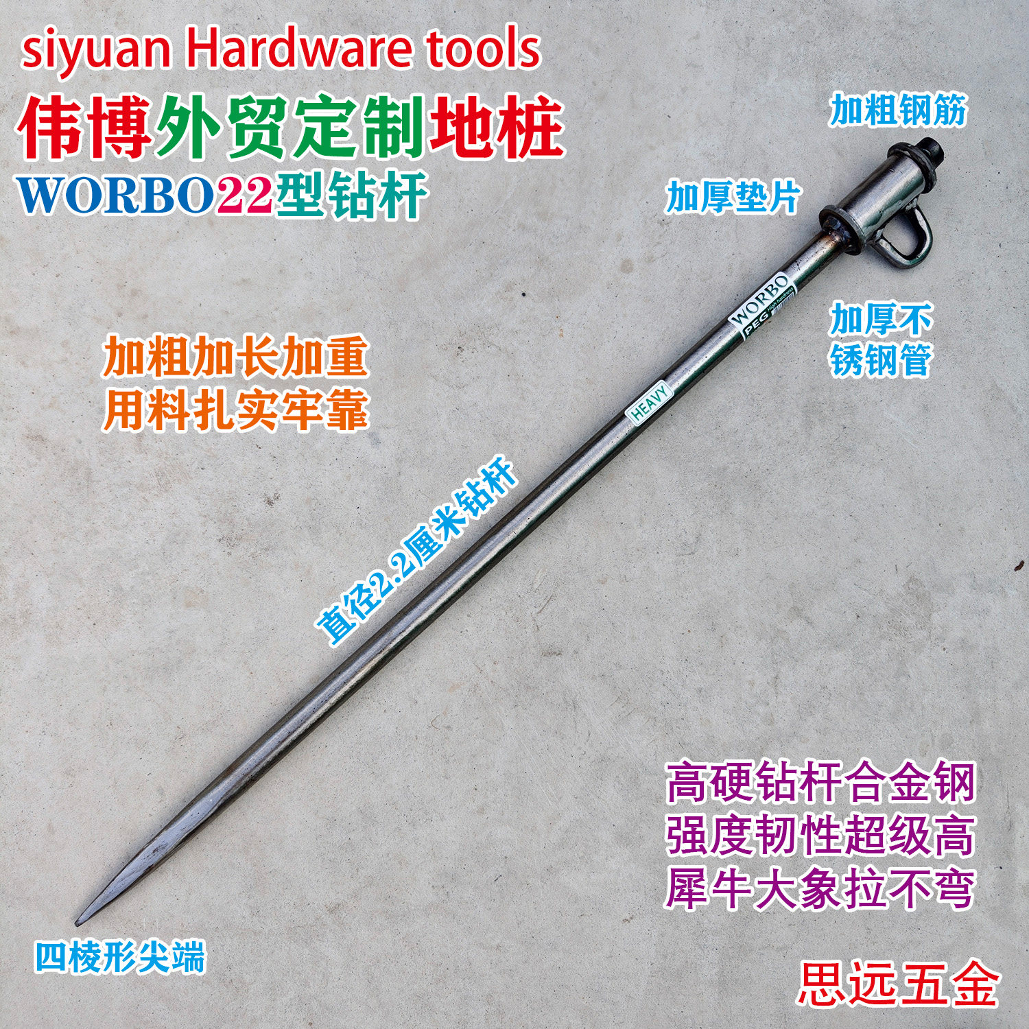 📚 伟博22钻杆地桩加粗合金钢手工锻打帐篷钉羊橛子地钉牛马桩子斜拉