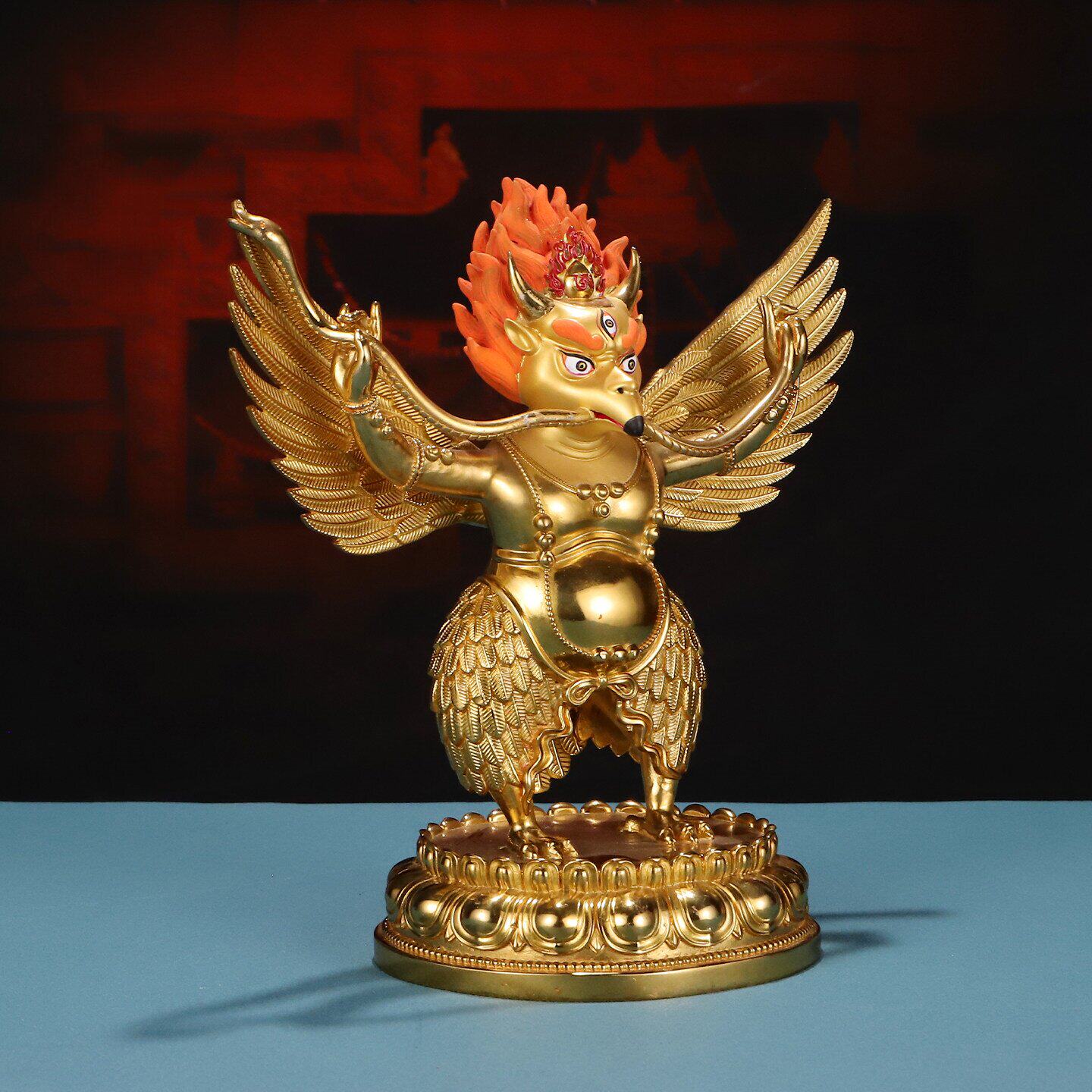 📚 王师兄藏式纯铜大鹏金翅鸟佛像镀金家用摆件金翅鸟雕像古色7寸