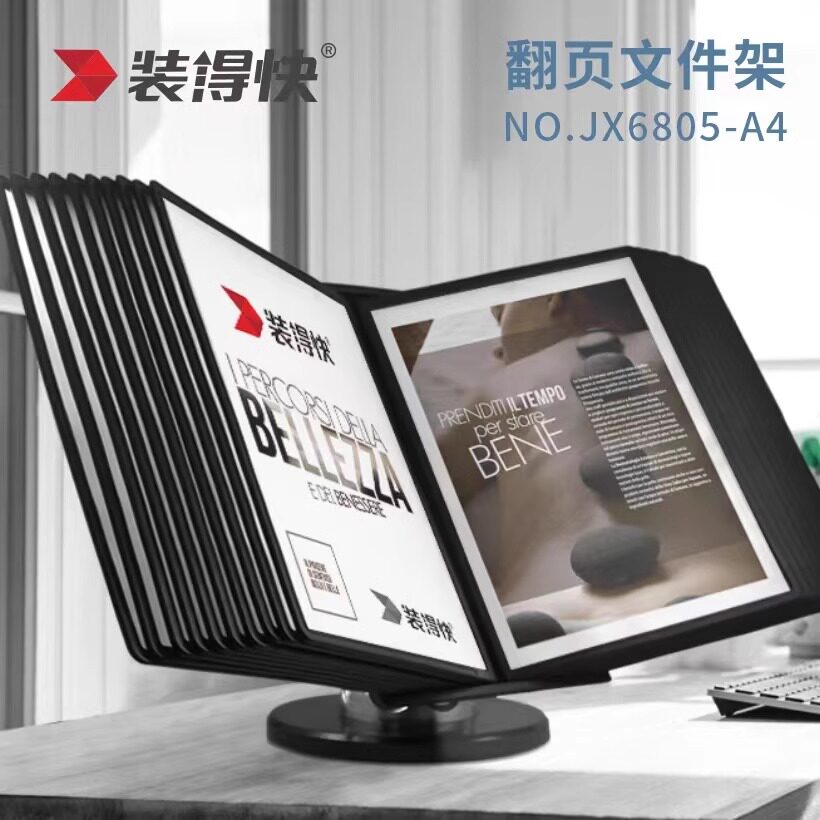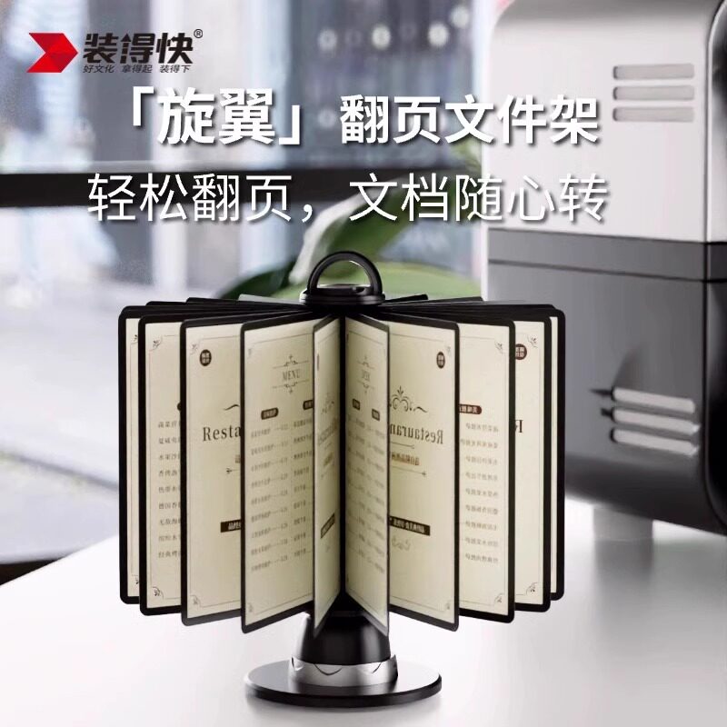 📚 装得快翻页文件架展示架菜谱架可360°旋转10页台式A4翻页文件夹20页桌面多功能菜牌宣传介绍挂壁式文件架