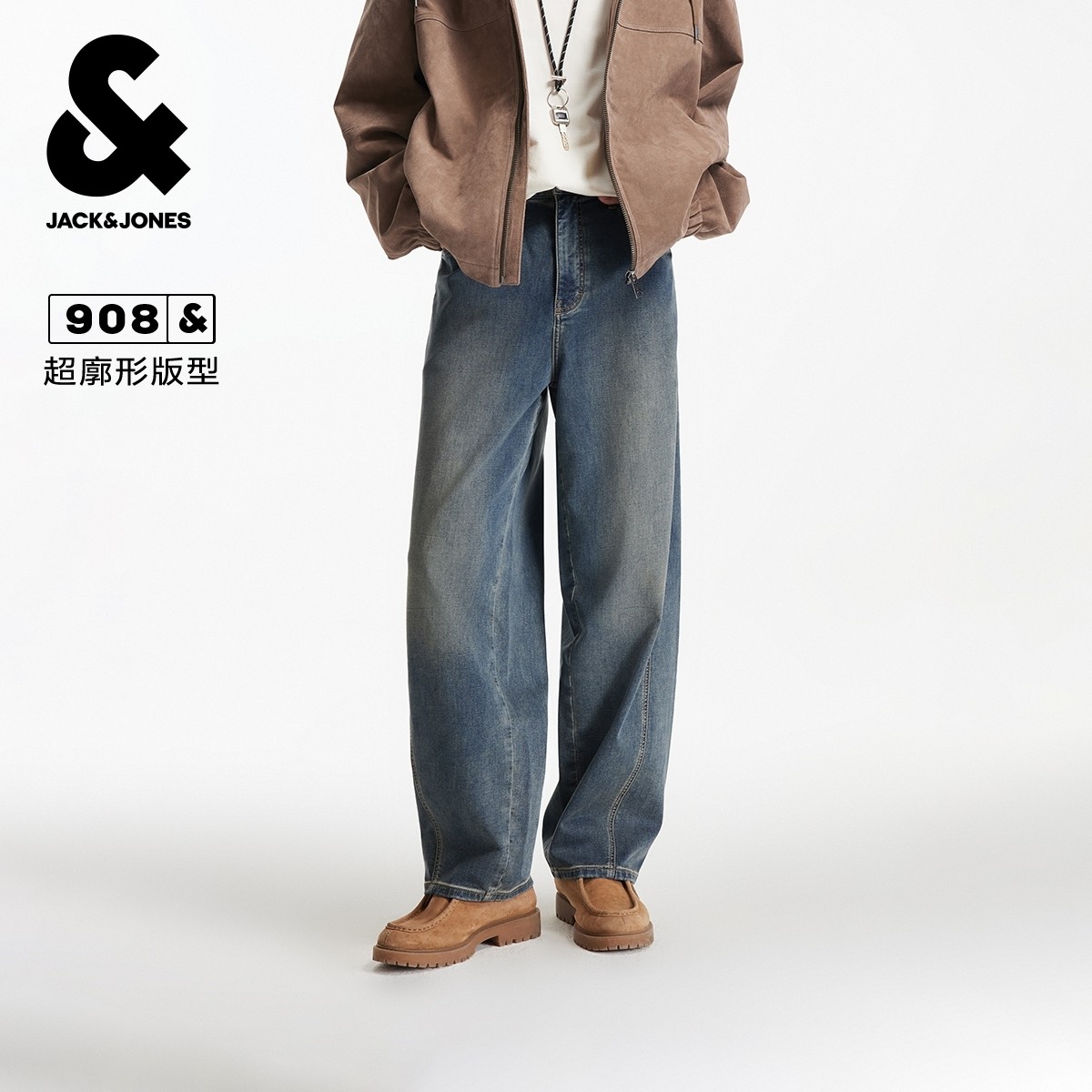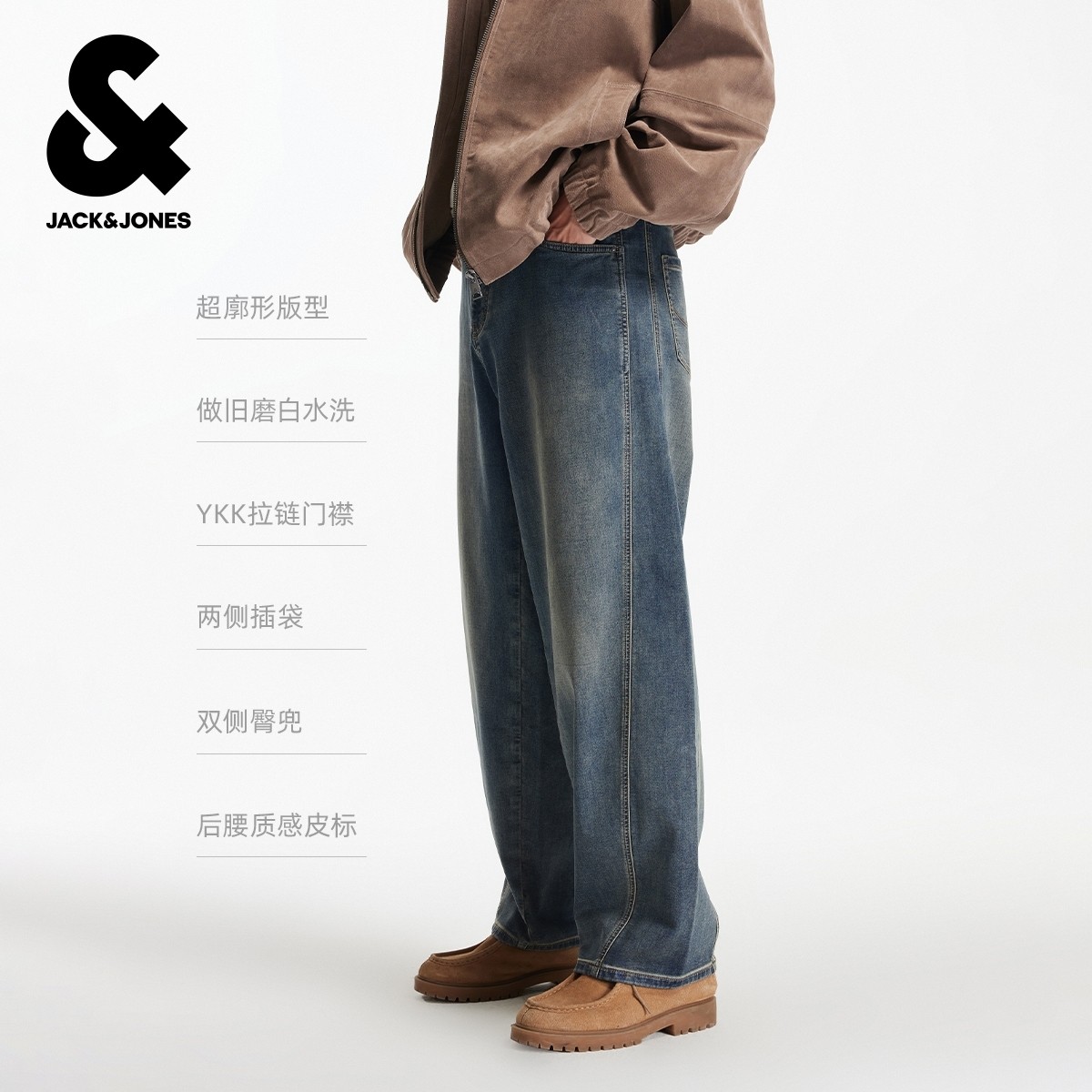 📚 杰克琼斯男装牛仔裤春季时尚百搭简约纯色做旧水洗百搭廓形裤子