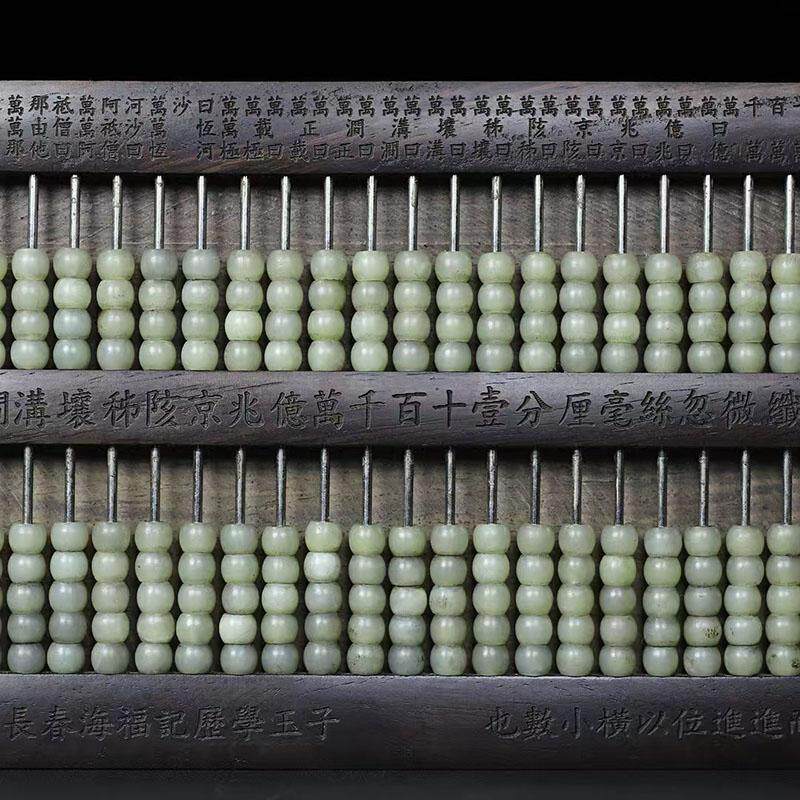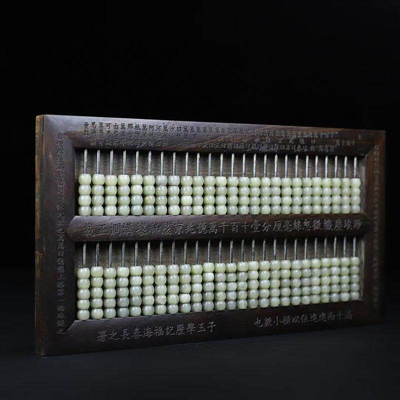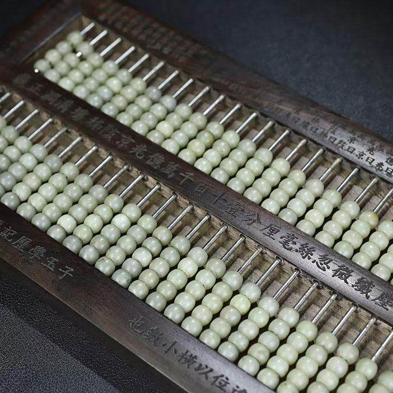 📚 古董文玩檀木镶白玉石珠子子玉算盘家用桌面摆件复古收藏老物件