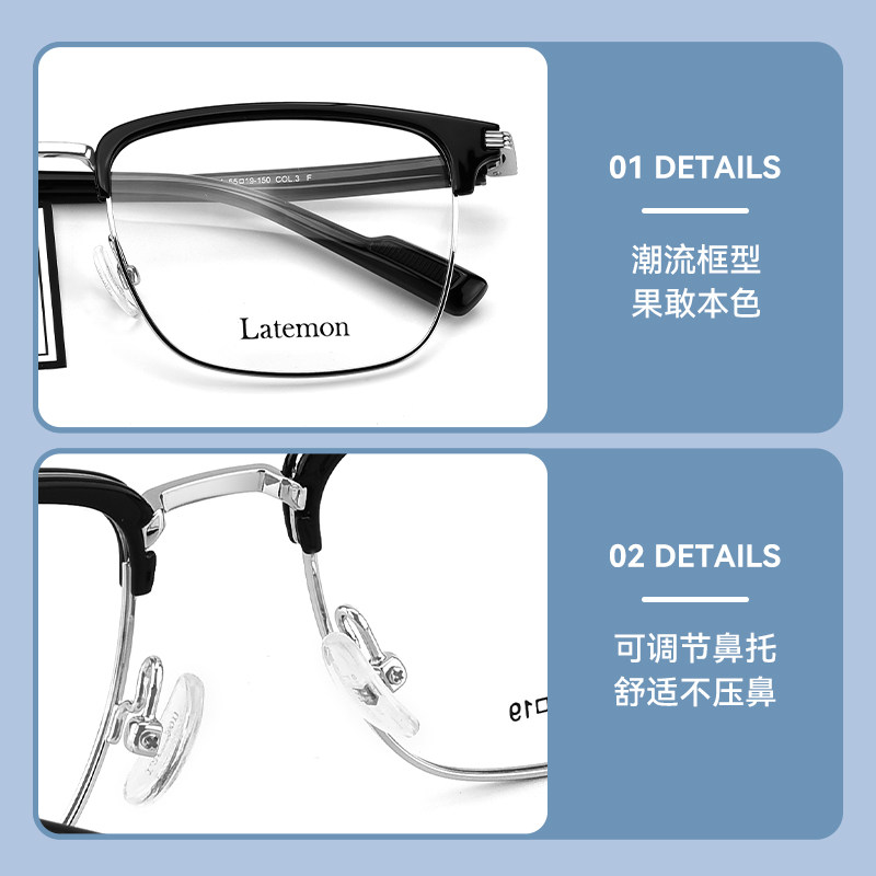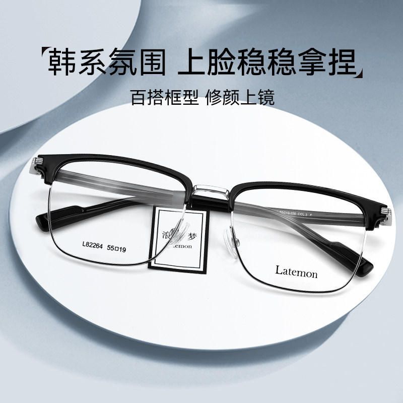 📚 Latemon浪特梦光学镜框潮流黑银色气质眉线框可配近视度数L82264