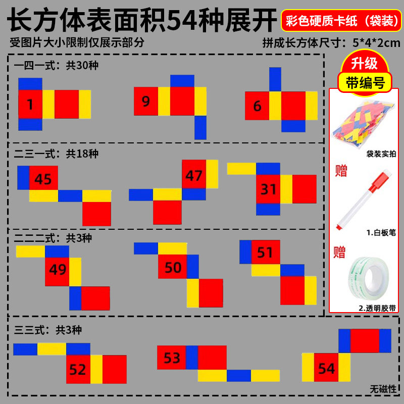 📚 长方体和正方体展开图学具11种54种折叠纸初中三五六年级数学教具