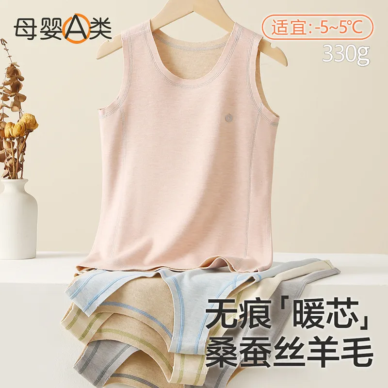 📚 儿童保暖背心a类秋冬款男童保暖打底内衣蚕丝羊绒女童打底衫上衣