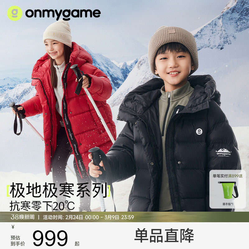 📚 onmygame儿童三防羽绒服男女童保暖防风加厚中长款运动外套95绒冬