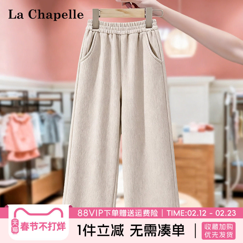📚 拉夏贝尔女童加厚绒裤子2026新女大童加绒长裤女孩冬季糯米阔腿裤