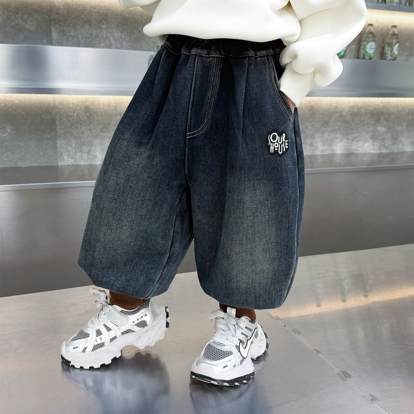 📚 男童加绒牛仔裤加厚儿童冬装长裤2025新款男孩羊驼绒灯笼裤束脚裤
