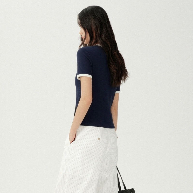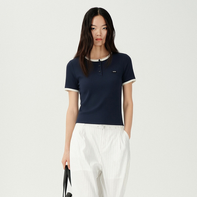 📚 XG雪歌元气感miu系撞色圆领短袖T恤女2026夏新款上衣XM201522A828