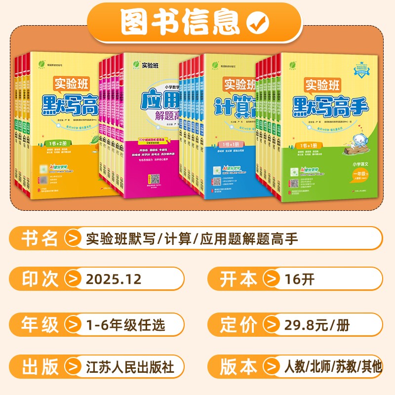 📚 2026春实验班计算高手默写高手一年级上册数学专项训练练习题二年级三四五六年级下册语文英语人教苏教北师大小学生思维训练春雨