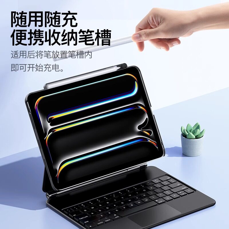 📚 适用2025iPad Pro11/13英寸妙控键盘伴侣壳12.9寸磁吸吸附带笔槽Air8/7/6防摔防弯10.9带触点平替悬浮键盘壳