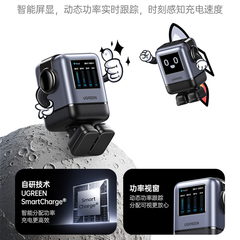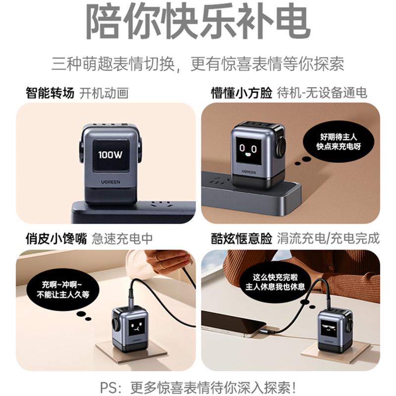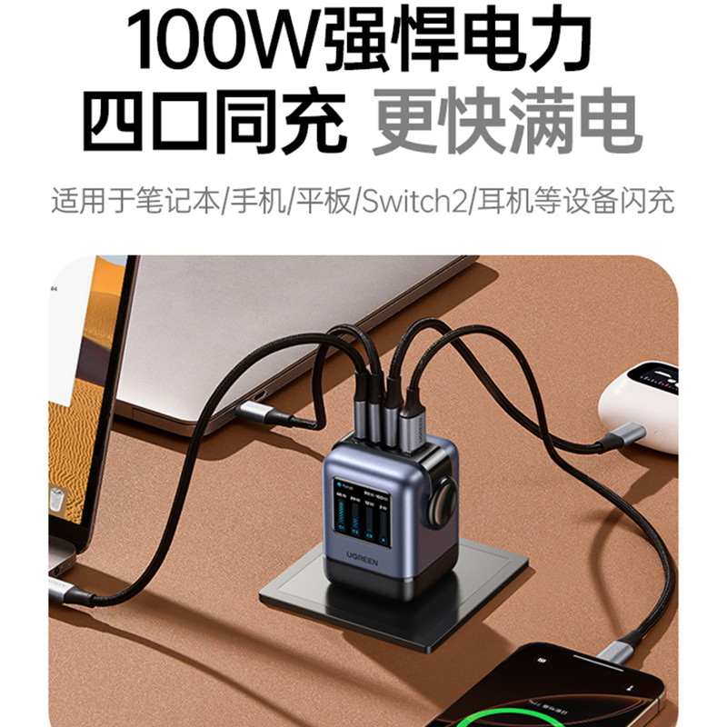 📚 UGREEN Charger GaN USB-C Type C Charger Q湃屏显机器人100W氮化镓充电器PD快充头适用苹果iPhone17pro小米