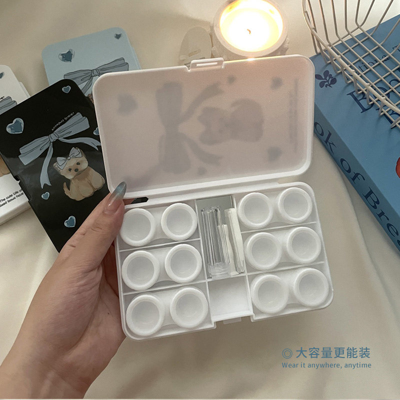 📚 隐形眼镜盒子美瞳盒收纳盒双联护理盒便携女多副装大容量可爱多个